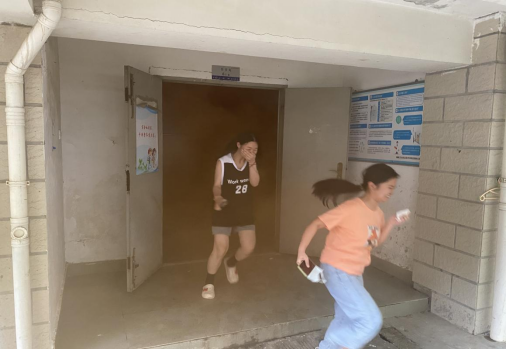 2月23日下午4:00時,全體演練工作人員到位,學生進入各自宿舍就位。為取得良好演練效果,我處工作人員點燃煙霧,模擬真實的地震火災場景。演練開始,第一聲哨響,全體學生均意識到突發(fā)災難來臨,立即在墻角及桌邊蹲在躲避,5秒后第二聲哨響,全體學生捂住口鼻,按照逃生路線有序的、迅速的逃離宿舍并撤離到安全區(qū)域。本次演練總共用時1分33秒,達到演練預期效果。