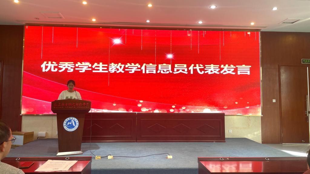 隨后,優(yōu)秀學(xué)生教學(xué)信息員代表戴嘉宜上臺發(fā)表感言。她分享了自己在擔(dān)任信息員期間的經(jīng)歷和收獲,表達了對學(xué)校教學(xué)管理工作的支持和對未來工作的期望。