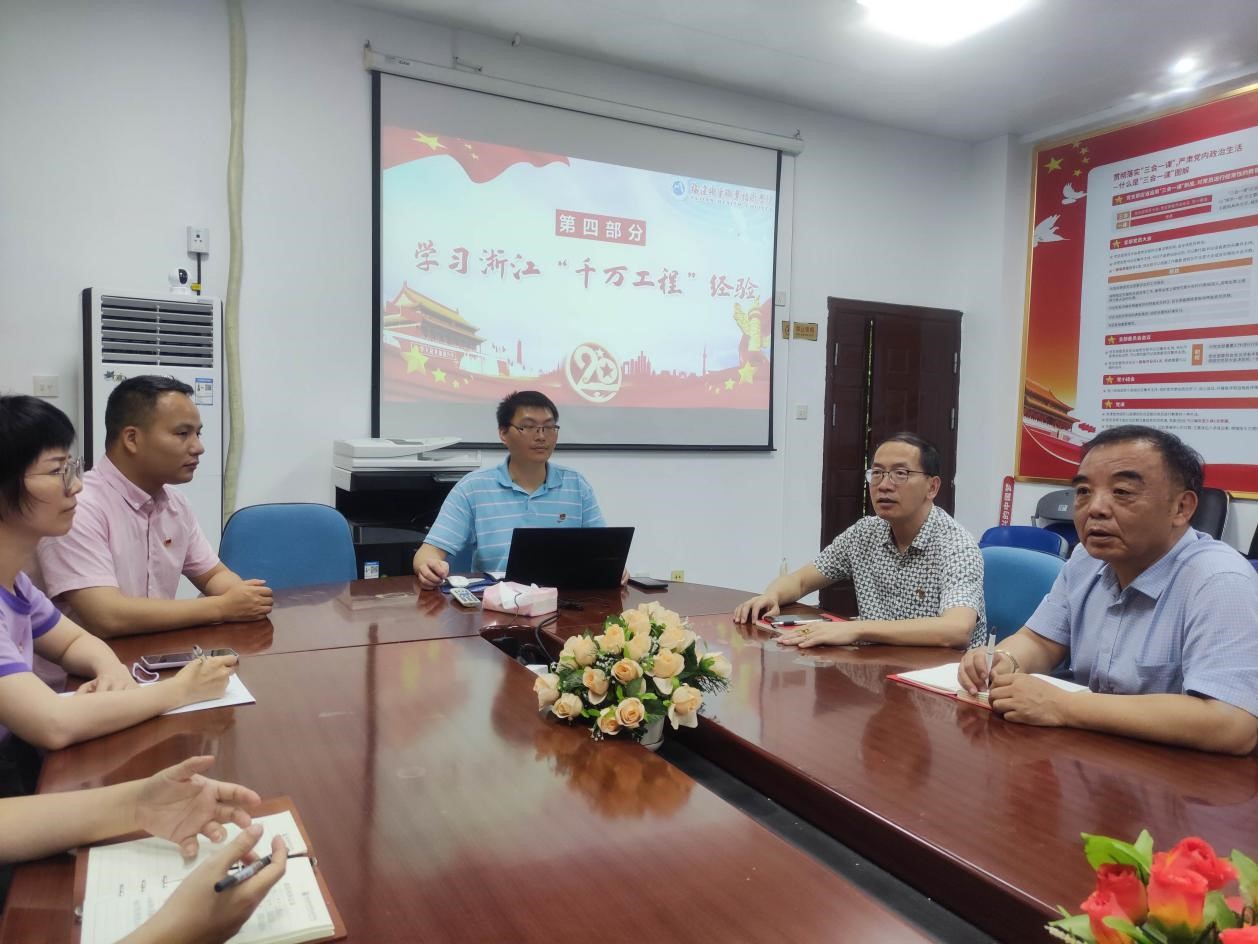 首先,醫(yī)學(xué)技術(shù)系第二教師黨支部鐘偉雄書(shū)記從最新文件精神、四位一體工程,醫(yī)路同芯育英才,學(xué)習(xí)浙江“千萬(wàn)工程”經(jīng)驗(yàn)四個(gè)部分,結(jié)合職業(yè)教育產(chǎn)教融合賦能提升行動(dòng)實(shí)施方案,探討產(chǎn)業(yè)需求更好融入人才培養(yǎng)全過(guò)程,逐步形成教育和產(chǎn)業(yè)統(tǒng)籌融合、良性互動(dòng)的發(fā)展格局。同時(shí),還共同學(xué)習(xí)了浙江“千萬(wàn)工程”經(jīng)驗(yàn)。