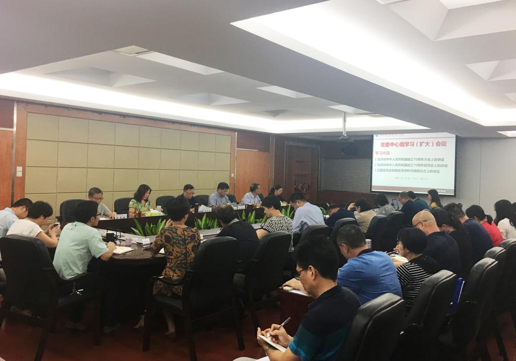 10月9日下午,黨委書記曾武祈主持召開黨委中心組學(xué)習(xí)(擴(kuò)大)會(huì)議,學(xué)習(xí)《習(xí)近平2019年9月29日在國家勛章和國家榮譽(yù)稱號(hào)頒授儀式上的講話》《習(xí)近平在慶祝中華人民共和國成立70周年招待會(huì)上的講話》和《習(xí)近平2019年10月1日在慶祝中華人民共和國成立70周年大會(huì)上的講話》。參加會(huì)議的有院領(lǐng)導(dǎo)及全體中層干部共50余人。