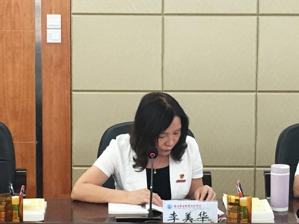 9月23日下午,黨委副書記李美華主持召開黨委中心組學習(擴大)學習會議,開展“不忘初心、牢記使命”主題教育第三專題“加強政治建設,落實全面從嚴治黨”第二場研討。參加會議的有院領導、院直機關(guān)副處級領導干部及支部書記、馬院院長、各黨總支(直屬支部)書記共24人。省委教育工委巡回指導二組組長福建工程學院黨委原副書記李天奇同志和成員省文化稽查總隊副調(diào)研員笪章彪同志蒞臨指導,對目前學院主題教育開展情況給予肯定。