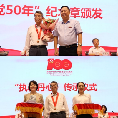 6月24日下午,學校召開慶祝中國共產(chǎn)黨成立100周年暨“兩優(yōu)一先”表彰大會,校黨委書記曾武祈為老黨員代表頒發(fā)了“光榮在黨50年”紀念章和鮮花,并舉行了新、老教師黨員“執(zhí)教丹心”的傳承儀式。紀念章頒發(fā)儀式莊重而簡樸,光輝的紀念章代表著以習近平同志為核心的黨中央對老黨員教師們的關(guān)懷和溫暖,映照著老黨員教師為教育事業(yè)堅守的不變初心。