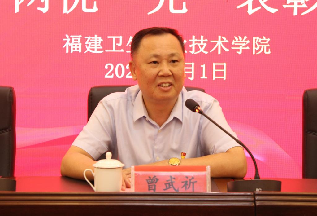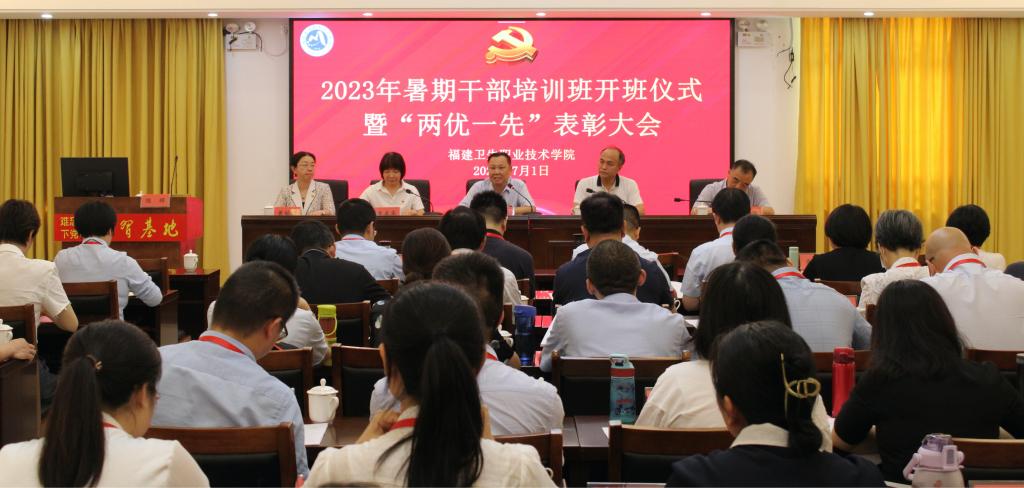 7月1日,在中國共產(chǎn)黨成立102周年之際,福建衛(wèi)生職業(yè)技術(shù)學(xué)院2023年暑期干部主題教育專題培訓(xùn)班開班式暨“兩優(yōu)一先”表彰大會(huì)在寧德市壽寧縣下黨鄉(xiāng)舉行。校黨委書記曾武祈、校長(zhǎng)許能鋒、黨委副書記李美華、紀(jì)委書記游鋒、副校長(zhǎng)黃銘珊出席大會(huì),全校中層以上干部、各級(jí)黨務(wù)干部共88人參加,大會(huì)由李美華主持。