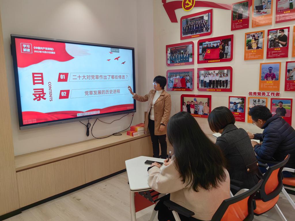 為深入學(xué)習(xí)宣傳貫徹黨的二十大精神,切實把黨員的思想統(tǒng)一到黨的二十大精神上來,12月1日,組織統(tǒng)戰(zhàn)部黨支部書記謝濤以專題黨課的形式,帶領(lǐng)支部黨員共同學(xué)習(xí)《中國共產(chǎn)黨章程(修正案)》。
