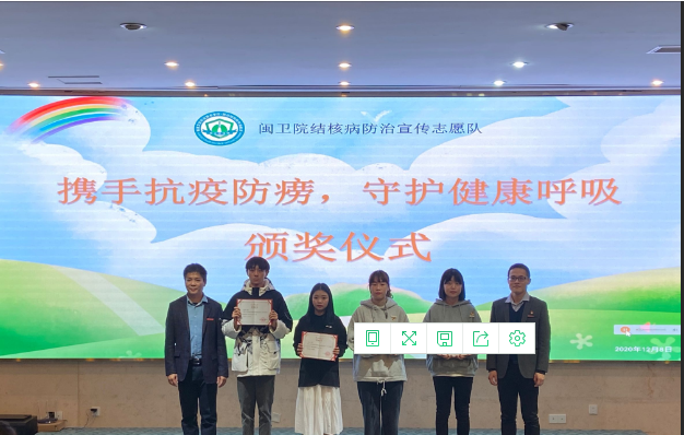 防治結(jié)核,我們齊行動。此次頒獎儀式,不僅以現(xiàn)場觀看視頻的方式展示近一個學期以來攜手抗疫防癆,守護健康呼吸活動中形式多樣、創(chuàng)意豐富的優(yōu)秀作品,通過作品對結(jié)核病防治知識進行了展示,還開啟了抖音app等直播渠道進行更加大眾化的結(jié)核知識普及,進一步引導學生主動學習結(jié)核病的防控知識,不斷提高自我防護能力,增強消除結(jié)核,共享健康社會的責任感和使命感。