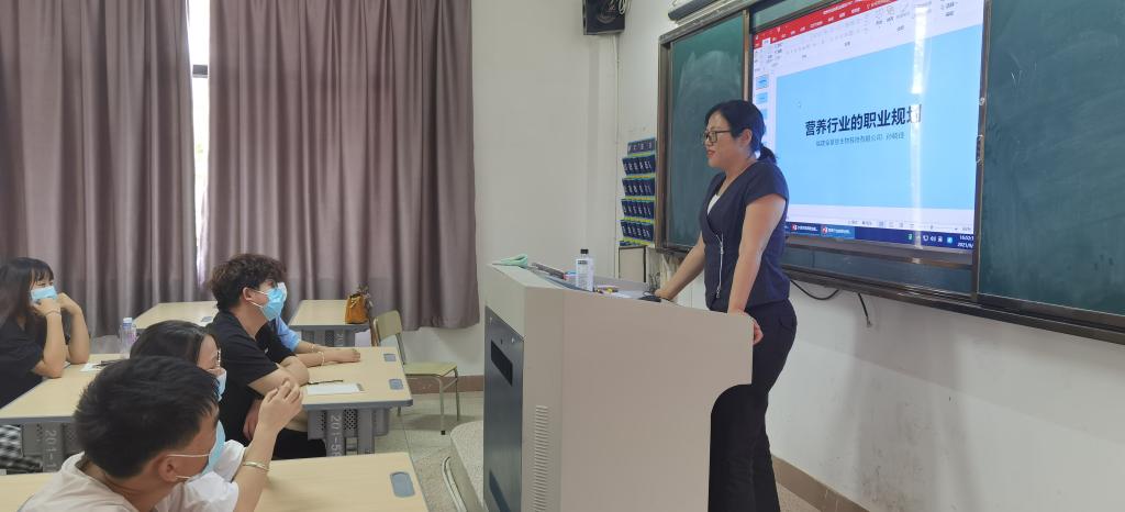 金草堂的孫總則從企業(yè)用人的角度,給大家進(jìn)行了營(yíng)養(yǎng)行業(yè)的職業(yè)規(guī)劃給出了懇切的建議。孫總的分享了自己的人生經(jīng)歷、用切實(shí)的案例教會(huì)大家如何平衡興趣和專業(yè),并提到了企業(yè)最看重員工的能力及品質(zhì)。此外,孫總還在如何利用課余、寒暑假時(shí)間去挖掘自己的能力潛力等方面給了極具操作空間的建議。最后,孫總鼓勵(lì)同學(xué)們能在今后的就業(yè)中能夠不局限于自己所想,開拓創(chuàng)新,面向社會(huì)更好的宣傳創(chuàng)新,把營(yíng)養(yǎng)推進(jìn)千家萬戶!