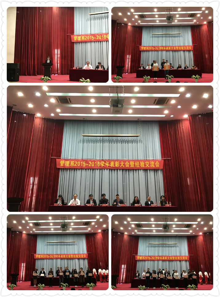 大會在莊嚴(yán)的國歌中拉開帷幕。首先,由管理系團(tuán)總支副書記馮瑞華宣讀了“關(guān)于管理系表彰2015-2016學(xué)年先進(jìn)集體和先進(jìn)個人的決定”,希望受表彰的同學(xué)珍惜榮譽(yù),戒驕戒躁。在頒獎儀式上,領(lǐng)導(dǎo)老師為受表彰的先進(jìn)集體和個人頒發(fā)了榮譽(yù)證書并希望同學(xué)們不斷進(jìn)取,努力成為一名優(yōu)秀的醫(yī)藥衛(wèi)生人才。一等獎學(xué)金獲得者15美容301班劉芹,優(yōu)秀學(xué)生干部及二等獎學(xué)金獲得者15營養(yǎng)301班羅鴻,三好生及特等獎學(xué)金獲得者15體保301班郭春燕分別作為學(xué)生代表,分享獲獎感言和個人學(xué)習(xí)經(jīng)驗(yàn)。預(yù)防醫(yī)學(xué)組李丹老師作為教師代表分享作為一名人民教師的驕傲和自豪,表示獲得表彰不僅是給同學(xué)們的一種肯定和鼓勵,更是對教師的一種認(rèn)可和鞭策。學(xué)生工作處葉海處長號召同學(xué)們響應(yīng)健康中國發(fā)展趨勢,明確學(xué)習(xí)目標(biāo),努力提升自身綜合素質(zhì);并期望同學(xué)們做一個積極向上的人,勤奮好學(xué)的人,全面發(fā)展的人。管理系莊海林副主任對同學(xué)們?nèi)〉玫膬?yōu)異成績表示祝賀,同時希望同學(xué)們在健康中國的創(chuàng)新創(chuàng)業(yè)浪潮中把握機(jī)遇迎接挑戰(zhàn),在步入社會之前不僅先學(xué)會學(xué)習(xí),更要學(xué)會做人,這樣才能為將來就業(yè)做好堅(jiān)實(shí)的基礎(chǔ)保障。