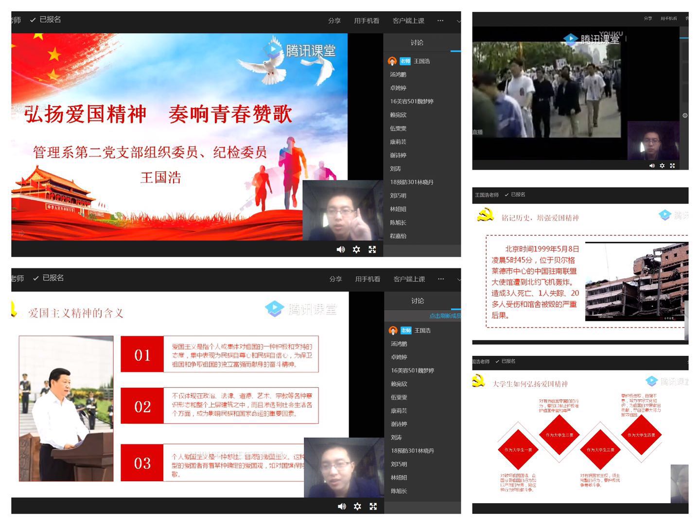 管理系開展第六期分黨校第八課學(xué)習(xí)--《弘揚(yáng)愛國精神,奏響青春贊歌》