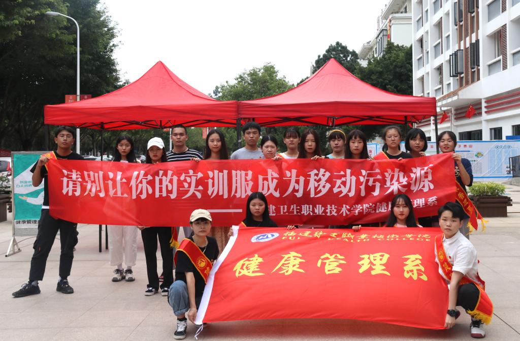 醫(yī)護(hù)人員的實(shí)訓(xùn)服是職業(yè)的象征,代表著生命的尊嚴(yán)和醫(yī)學(xué)的圣潔,是醫(yī)學(xué)職業(yè)倫理教育的良好載體,它具有切斷傳播途徑作用,也是防止交叉感染重要屏障,但是如果不正確處理,可能會成為危害人體的來源。2020年10月5日健康管理系第一黨支部聯(lián)合系團(tuán)總支開展以“請別讓你的實(shí)訓(xùn)服成為移動污染源”為主題的衛(wèi)生安全宣傳教育活動,學(xué)院黨委委員、副院長陳貞健指導(dǎo)并參加此次活動。