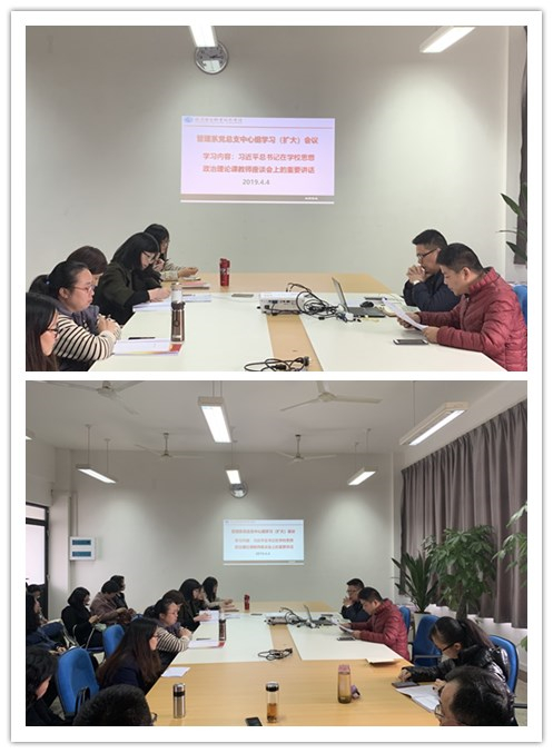 4月4日下午,管理系黨總支召開中心組學(xué)習(xí)擴(kuò)大會(huì)議,學(xué)習(xí)習(xí)近平總書記在學(xué)校思想政治理論課教師座談會(huì)上的重要講話,管理系全體教職工參加了會(huì)議,會(huì)議由管理系黨總支書記艾松軍主持。