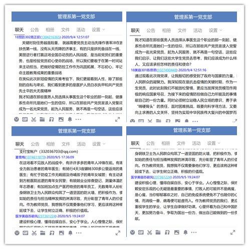 觀看后,大家紛紛發(fā)表感想。夏雪梅老師表示,在這場(chǎng)看不見敵人的戰(zhàn)疫中,有許許多多的青年人沖鋒在前。有竭盡全力救治患者的青年醫(yī)生;有騎行4天3夜輾轉(zhuǎn)300多公里返崗的青年女醫(yī)生;有忙于防疫工作無暇顧及待哺孩子的青年女城管;有主動(dòng)請(qǐng)纓到方艙醫(yī)院巡邏的青年女民警;有兢兢業(yè)業(yè)排查登記、測(cè)量體溫的青年志愿者;有加班加點(diǎn)生產(chǎn)醫(yī)藥物資的青年員工,無數(shù)青年人紛紛化身鋼鐵衛(wèi)士為人民群眾構(gòu)筑了一道堅(jiān)固的防火墻,把積極作為、慎終如始的責(zé)任與擔(dān)當(dāng)精神發(fā)揮得淋漓盡致,充分彰顯了青年人的價(jià)值取向。作為教師黨員,我想我不僅需要向他們學(xué)習(xí),更應(yīng)該將這種精神延續(xù)下去,讓學(xué)生樹立正確、積極的價(jià)值觀。蘇碧鳳老師表示,建設(shè)積極心理,懂得自娛自樂,安心于學(xué)業(yè)。人心惶惶之際,保持一顆安定樂觀的心無疑是最重要的事情,打敗人的可能并不是病魔,而是心魔,當(dāng)你郁郁寡歡之時(shí),自己的免疫系統(tǒng)便免不了也隨你的心情,而消極一番,病毒便可趁虛而入。作為教師黨員的我們,更應(yīng)該重視學(xué)生的學(xué)業(yè),讓學(xué)生自律做好功課。心里懷著為自己和中國的明天,更加努力奮斗,爭取為國出一份力,做出自己能做到的一份貢獻(xiàn)。預(yù)備黨員高正茹同學(xué)表示,關(guān)鍵時(shí)刻任務(wù)越是險(xiǎn)重,就越需要黨員主動(dòng)當(dāng)先鋒作表率沖在救死扶傷第一線。在此次新冠疫情的災(zāi)難考驗(yàn)下,我們更能看到人性,除了那些個(gè)別的自私與卑劣,我們看到更多的是醫(yī)護(hù)人員白衣執(zhí)甲和共產(chǎn)黨員身先士卒的大無畏精神。我才知道在那些醫(yī)務(wù)人員選擇從事醫(yī)生這個(gè)職業(yè)的那一刻起,健康所系性命所托是她們一生的信仰,成為一名光榮黨員,為人民服務(wù),就不再是一句空話。這些應(yīng)該給我們啟示,讓我們這些大學(xué)生黨員去思考,我們應(yīng)該成為什么樣的人,又應(yīng)該承擔(dān)怎樣的責(zé)任和使命?預(yù)備黨員陳思思同學(xué)表示,通過觀看此次微黨課,讓我感受到了政府與國家的力量,以及人民群眾的凝聚力。我深知現(xiàn)在是抗擊疫情的關(guān)鍵時(shí)期,作為一名學(xué)生黨員,此時(shí)此刻我們不能放松警惕,更應(yīng)當(dāng)發(fā)揮黨員模范作用,積極響應(yīng)國家號(hào)召,為接下來的疫情防控做自己力所能及的事情,貢獻(xiàn)自己的一份力量。同時(shí)必須樹立站穩(wěn)人民立場(chǎng)的意識(shí),勇于承擔(dān)起“啃硬骨頭”的責(zé)任,面對(duì)困難挑戰(zhàn),既要向科學(xué)尋方法,又要有胸懷向上求善的人文關(guān)懷,堅(jiān)持為實(shí)現(xiàn)中華民族偉大復(fù)興的中國夢(mèng)而不懈奮斗。