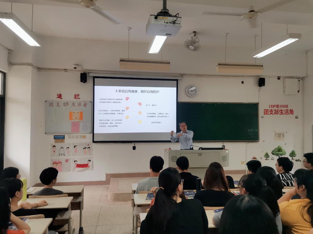9月22日上午,學(xué)院領(lǐng)導(dǎo)在教學(xué)樓115為學(xué)生講授返校第一課《戰(zhàn)疫,我們在一起》。本次返校第一課由黨委委員、副院長陳貞健主講,管理系2019級健康管理專業(yè)學(xué)生參加現(xiàn)場授課。