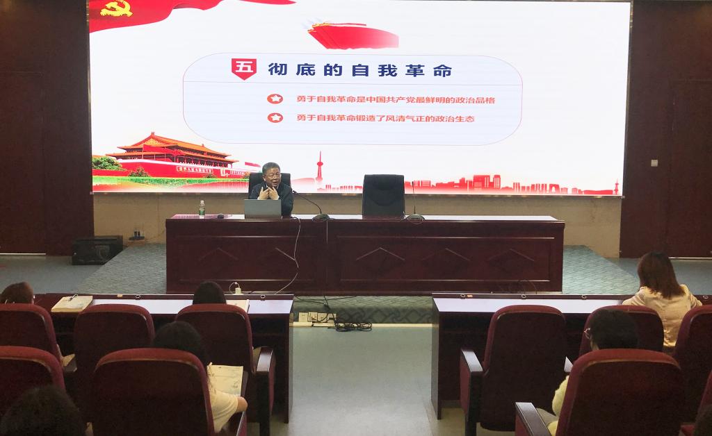 陳貞健圍繞“中國(guó)共產(chǎn)黨為什么能”主題,分別從“科學(xué)的理論指導(dǎo)”、“堅(jiān)定的理想信念”、“強(qiáng)大的組織優(yōu)勢(shì)”、“堅(jiān)定的群眾基礎(chǔ)”、“徹底的自我革命”五個(gè)方面來(lái)講解中國(guó)共產(chǎn)黨成立以來(lái)中華民族迎來(lái)了從站起來(lái)、富起來(lái)到強(qiáng)起來(lái)的偉大飛躍,創(chuàng)造了讓世界驚嘆的“中國(guó)奇跡”。在黨的領(lǐng)導(dǎo)下,我們有力應(yīng)變局、平風(fēng)波、戰(zhàn)洪水、抗地震、抗擊新冠肺炎疫情等,在艱難中磨礪成長(zhǎng),走向強(qiáng)大。充分體現(xiàn)中國(guó)共產(chǎn)黨是為中國(guó)人民謀幸福的黨,也是為人類(lèi)進(jìn)步事業(yè)而奮斗的黨。實(shí)踐證明,我們黨能夠始終代表最廣大人民的根本利益,始終堅(jiān)持以人民為中心,從而凝聚起人民的磅礴偉力。