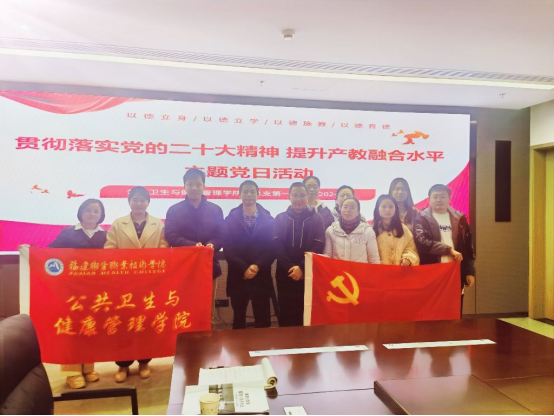 為深入貫徹落實中共中央辦公廳、國務院辦公廳印發(fā)的《關于深化現(xiàn)代職業(yè)教育體系建設改革的意見》和省政府辦公廳印發(fā)的《關于進一步推動職業(yè)教育服務經(jīng)濟社會發(fā)展的十條措施》,1月3日,由公共衛(wèi)生與健康管理學院黨總支第一支部與福州市疾病預防控制中心(以下簡稱“福州市疾控”)共同舉辦“貫徹落實黨的二十大精神 提升產(chǎn)教融合水平”主題黨日活動。此次活動由福州市疾病預防控制中心相關人員、公共衛(wèi)生與健康管理學院黨總支第一支部、預防醫(yī)學專業(yè)師生共同參與。