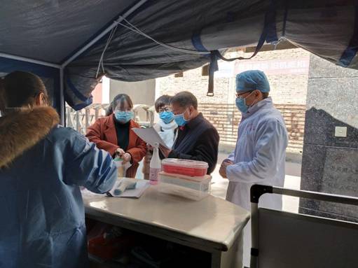 (圖為:預(yù)防班周銀華(左二)參與外來(lái)人員復(fù)工體溫檢測(cè)工作)