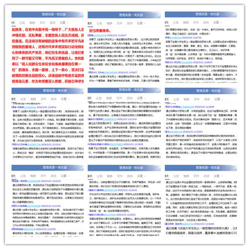 為認真學(xué)習(xí)在疫情阻擊戰(zhàn)中發(fā)揮積極作用的先進典型,深刻認識中國抗疫彰顯的中國共產(chǎn)黨領(lǐng)導(dǎo)和中國特色社會主義制度的顯著優(yōu)勢,2020年3月31日,管理系第一黨支部開展全體黨員同上“全國大學(xué)生同上一堂疫情防控思政大課”主題黨日活動,并積極發(fā)表觀后感。