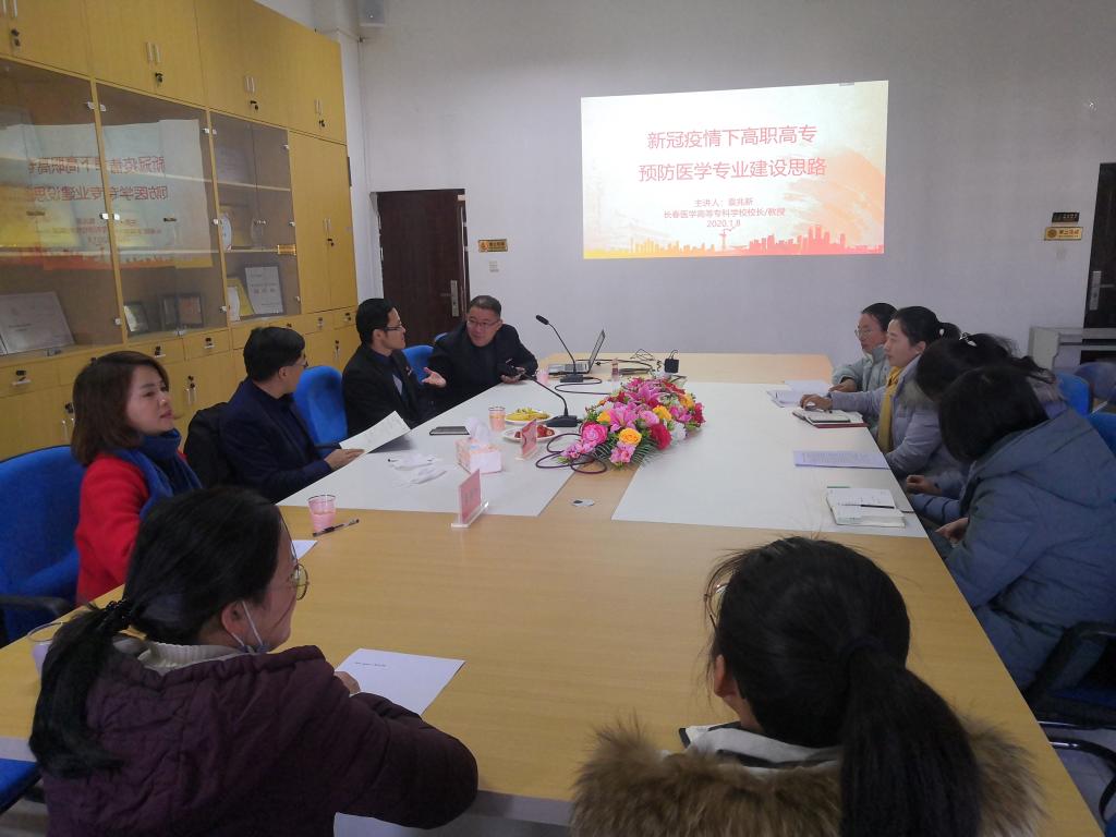 2021年1月8日,新年伊始,長(zhǎng)春醫(yī)學(xué)高等專科學(xué)校校長(zhǎng)袁兆新教授蒞臨我健康管理系做了題為《新冠疫情下高職高專預(yù)防醫(yī)學(xué)專業(yè)建設(shè)的新思路》的專題講座。健康管理系副主任李宏主持本場(chǎng)講座,我副院長(zhǎng)鄭翠紅、健康管理系書(shū)記黃曦、主任莊海林、副書(shū)記吳燕玲及青年教師到場(chǎng)聆聽(tīng)講座。