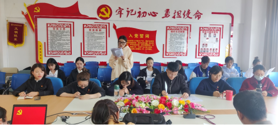 最后,健康管理系黨總支第一支部書記吳明同志做了大會(huì)總結(jié)發(fā)言,她在肯定發(fā)展對(duì)象優(yōu)點(diǎn)的同時(shí),也希望大家能夠時(shí)刻記住自己的黨員身份,牢記這個(gè)重要時(shí)刻,牢記自己的使命,樹立榜樣,向優(yōu)秀黨員同志學(xué)習(xí),起到模范帶頭作用,牢記初心,堅(jiān)定決心,爭取按期轉(zhuǎn)正。