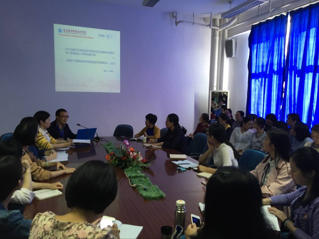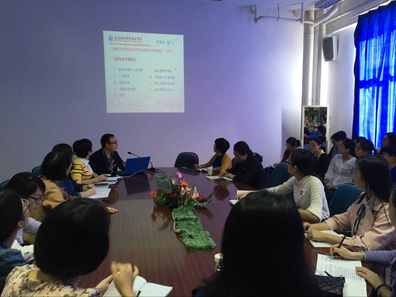 年11月9日,護(hù)理系在會(huì)議室召開系部大會(huì),學(xué)習(xí)了《中共福建衛(wèi)生職業(yè)技術(shù)學(xué)院委員會(huì)加強(qiáng)和改進(jìn)新形勢下思想政治工作的實(shí)施方案》和《福建衛(wèi)生職業(yè)技術(shù)學(xué)院效能建設(shè)管理規(guī)定》(試行),全體教職工及部分學(xué)生代表參加學(xué)習(xí)。