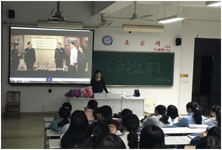 各班輔導員利用晚自習時間,專門組織班級同學學習《中華人民共和國國家安全法》、《中華人民共和國反間諜法》等相關(guān)法律基礎(chǔ)知識,并結(jié)合案例剖析、圖片展示、微視頻播放等多種學習形式,以增強同學們的國家安全意識。