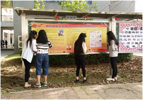 除了利用教師例會、學生主題班會等宣傳學習形式外,護理系黨總支還充分以宣傳欄、宣傳標語的形式,以“《國家安全法》的解讀、我國有關(guān)國家安全的立法以及公民與組織維護國家安全的義務(wù)和權(quán)力等”為主要內(nèi)容,向師生宣傳國家安全法的基礎(chǔ)知識,并努力增強師生關(guān)于“國家安全,人人有責”的觀念。