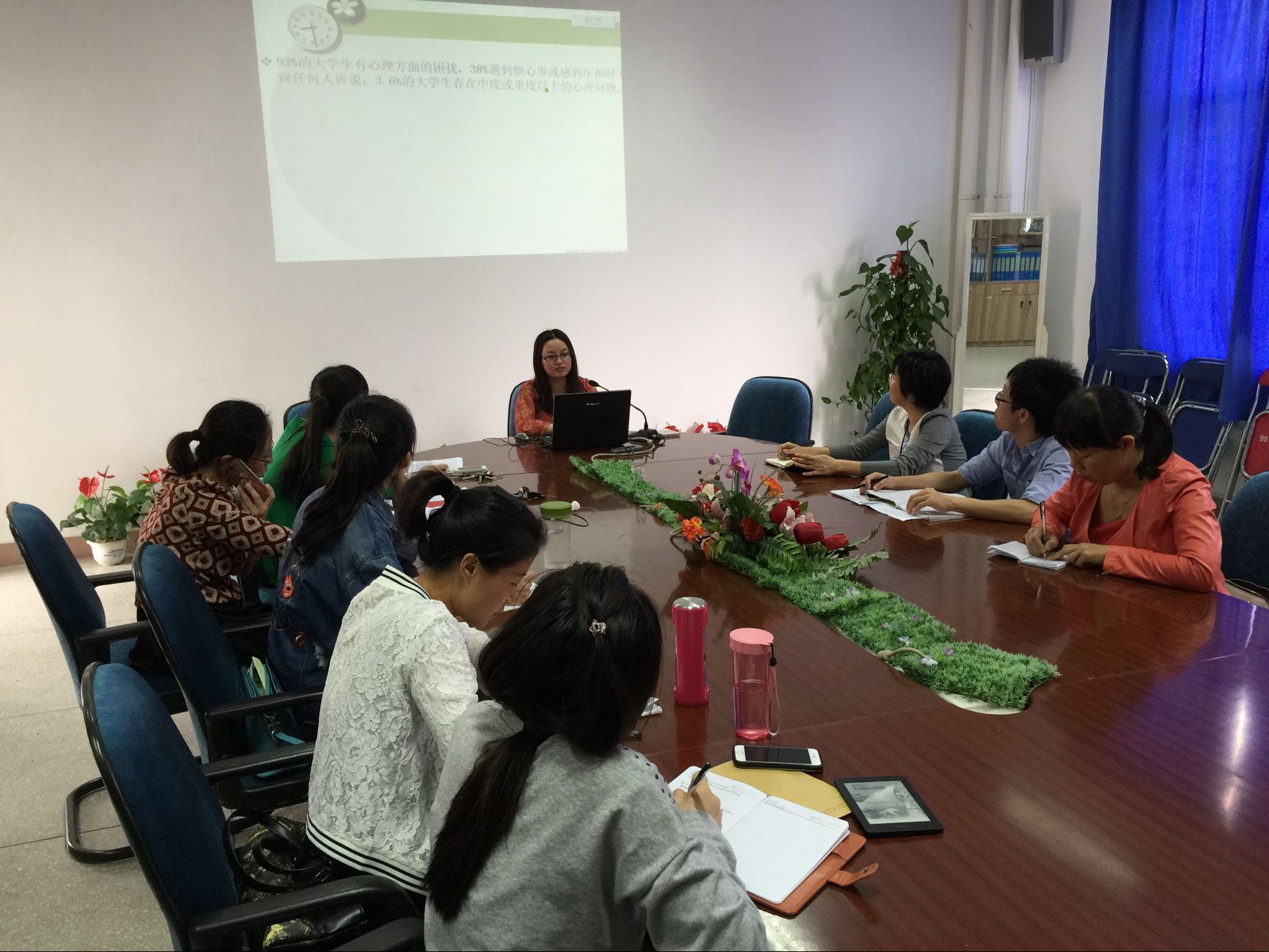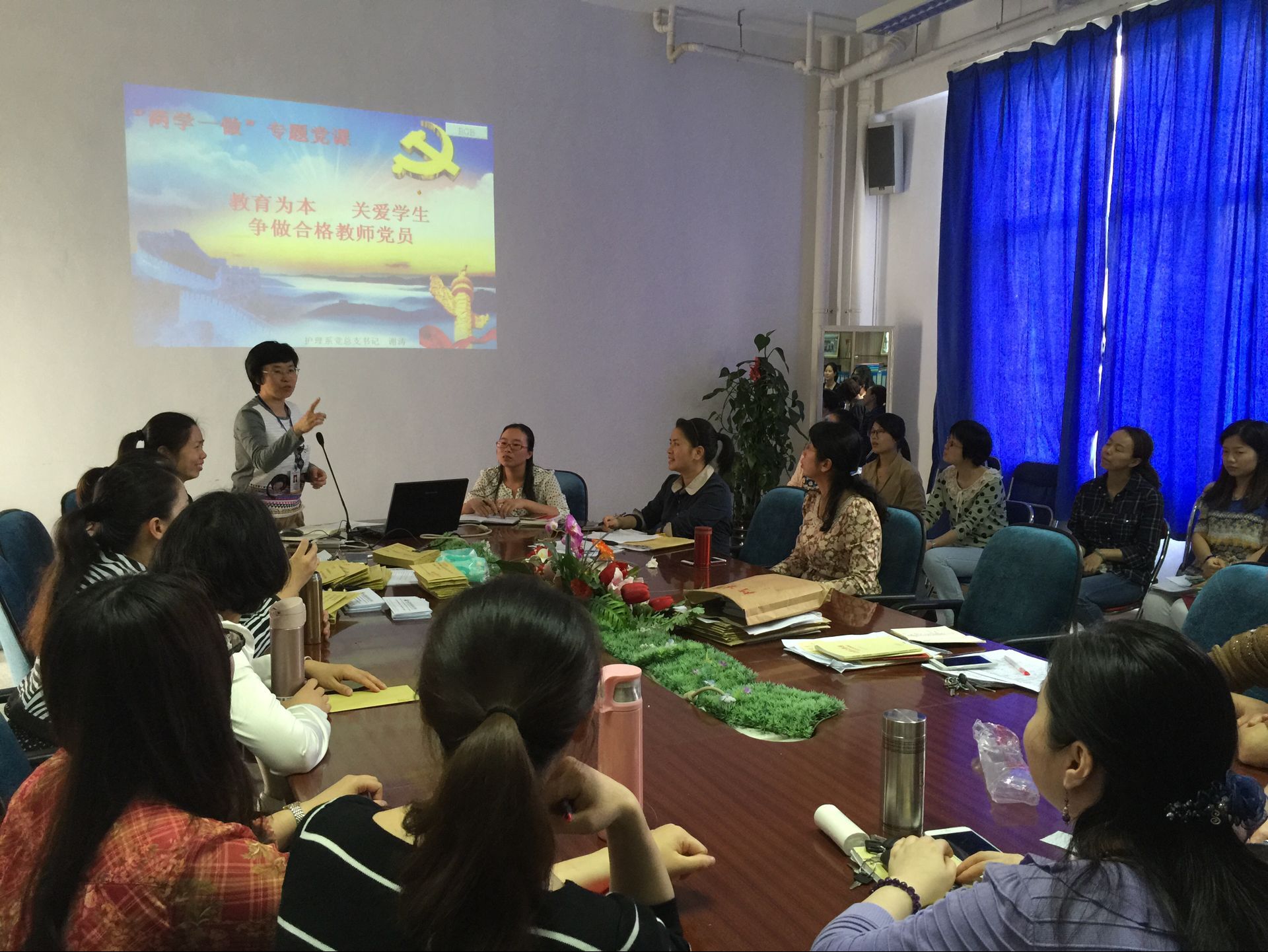 2016年5月17日下午,護(hù)理系黨總支開展了“兩學(xué)一做”學(xué)習(xí)專題黨課??傊浿x濤授課,以“‘教育為本,關(guān)愛學(xué)生;爭(zhēng)做合格教師黨員’——學(xué)生的心理問題識(shí)別和干預(yù)”為主題,對(duì)全系教師黨員進(jìn)行了專題教育輔導(dǎo)。