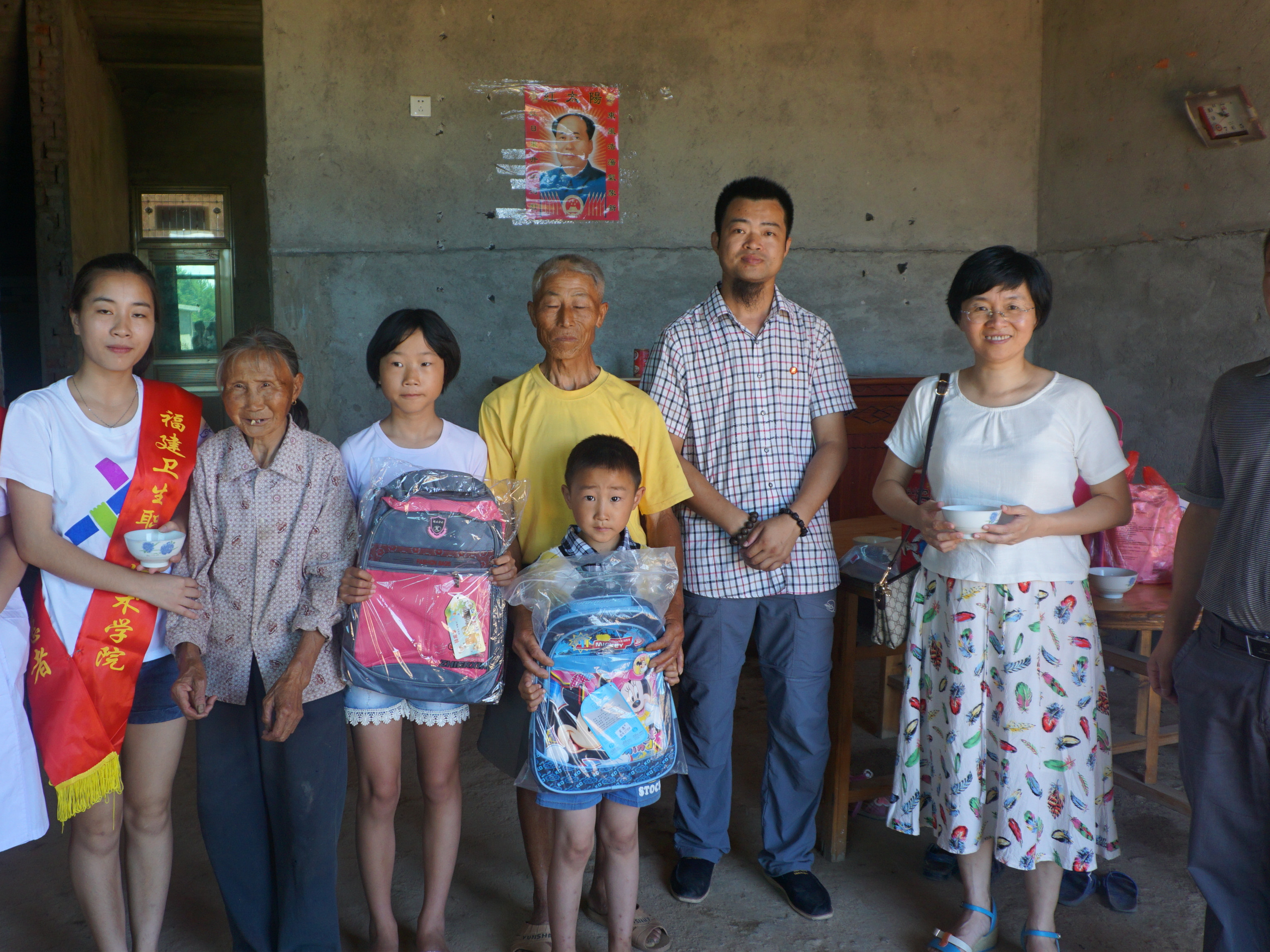 為慶祝中國共產(chǎn)黨成立95周年,扎實(shí)開展“兩學(xué)一做”學(xué)習(xí)教育。2016年7月7日,護(hù)理系黨總支謝濤書記、鄭梅欽老師、江麗娜老師攜部分學(xué)生入黨積極分子在福建螞蟻力量愛心聯(lián)合會(huì)會(huì)長楊貞凱、三明市寧化縣河龍村村干部的陪同下,對(duì)當(dāng)?shù)夭糠值捅舻壬罾щy群眾進(jìn)行慰問幫扶。