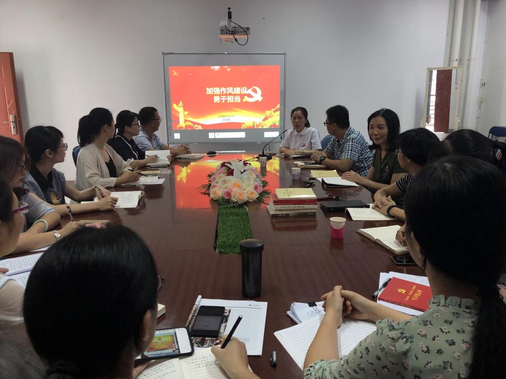 龔海蓉同志結(jié)合護理系調(diào)研中發(fā)現(xiàn)的上學(xué)期期末考試監(jiān)考中我系兩位教師遲到、缺席造成不良影響,受到學(xué)院通報處理的問題展開,闡述了“加強作風(fēng)建設(shè),勇于擔(dān)當(dāng)”的意義,講述了如何不忘初心、牢記使命,主動擔(dān)當(dāng)作為,踐行使命。
