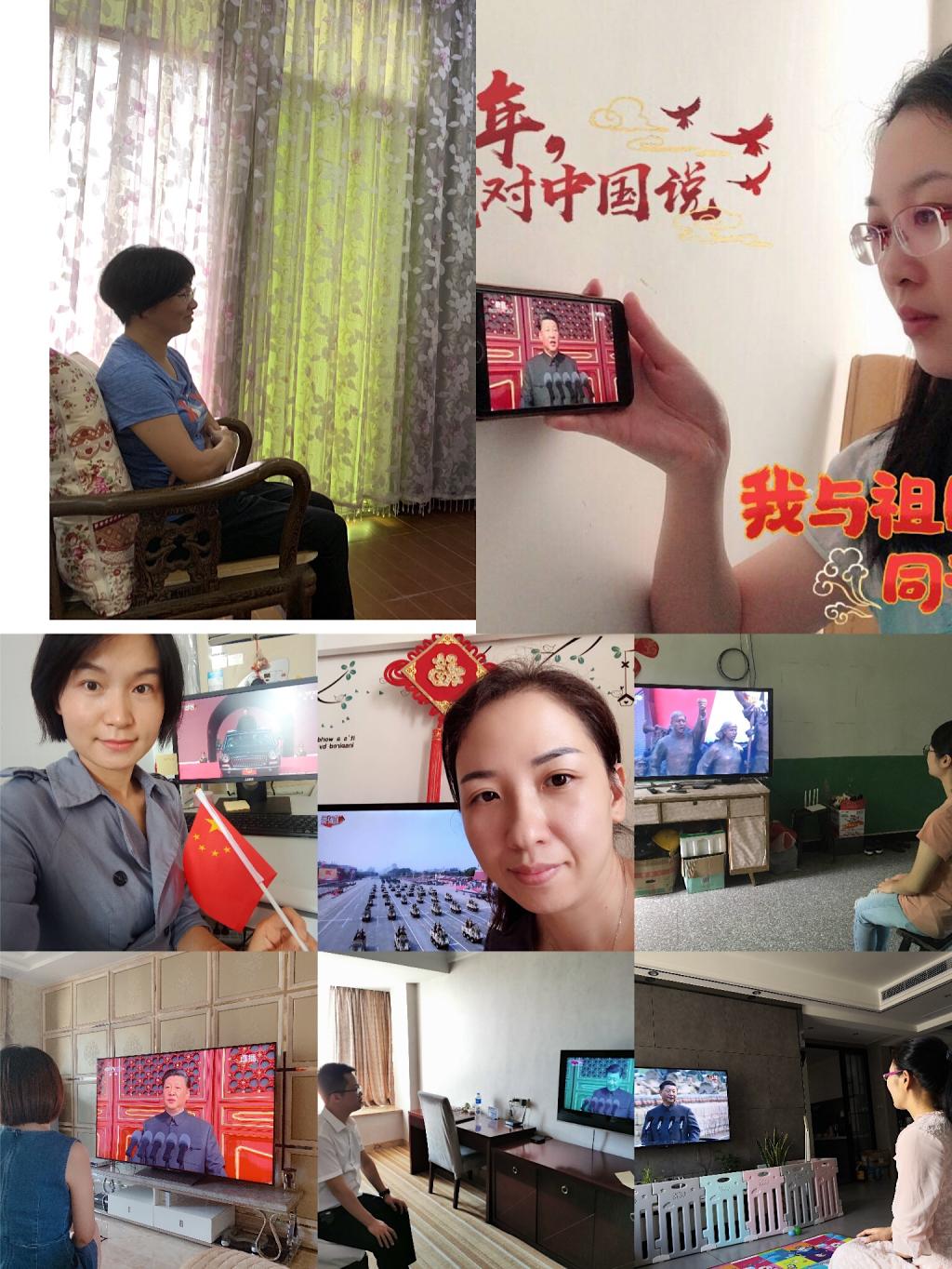 同學(xué)們也時(shí)刻關(guān)注著慶祝大會。留校的同學(xué)在宿舍觀看慶祝大會,返家途中的同學(xué)們在擁擠的車上也時(shí)刻關(guān)注著慶祝大會的盛況。