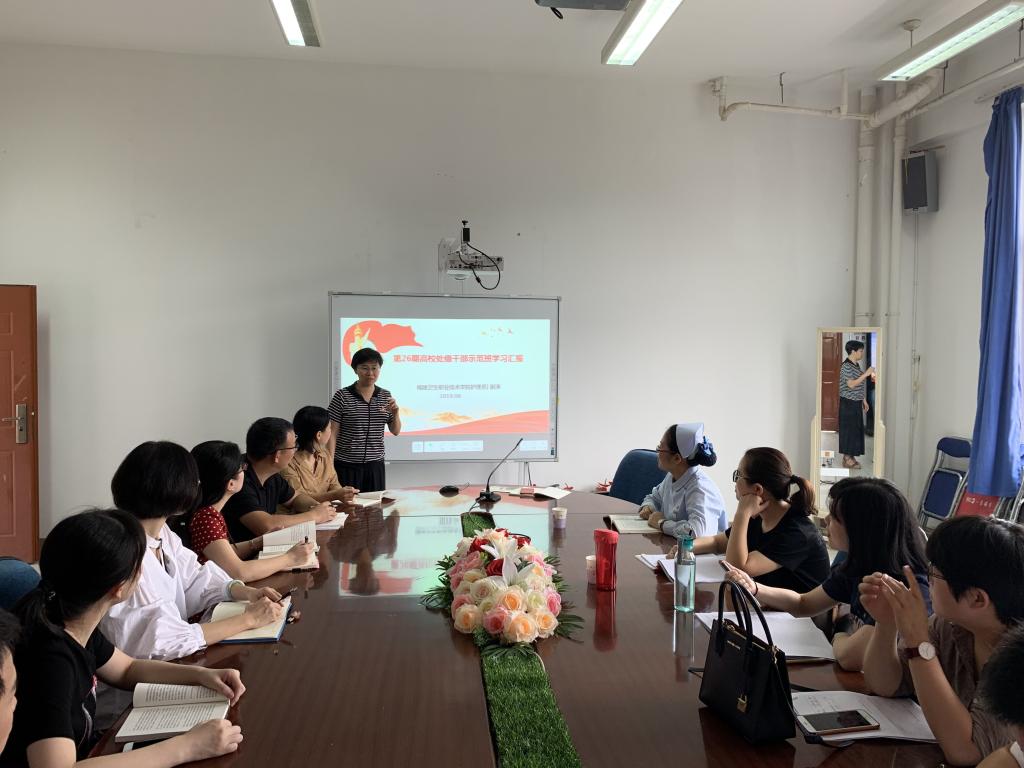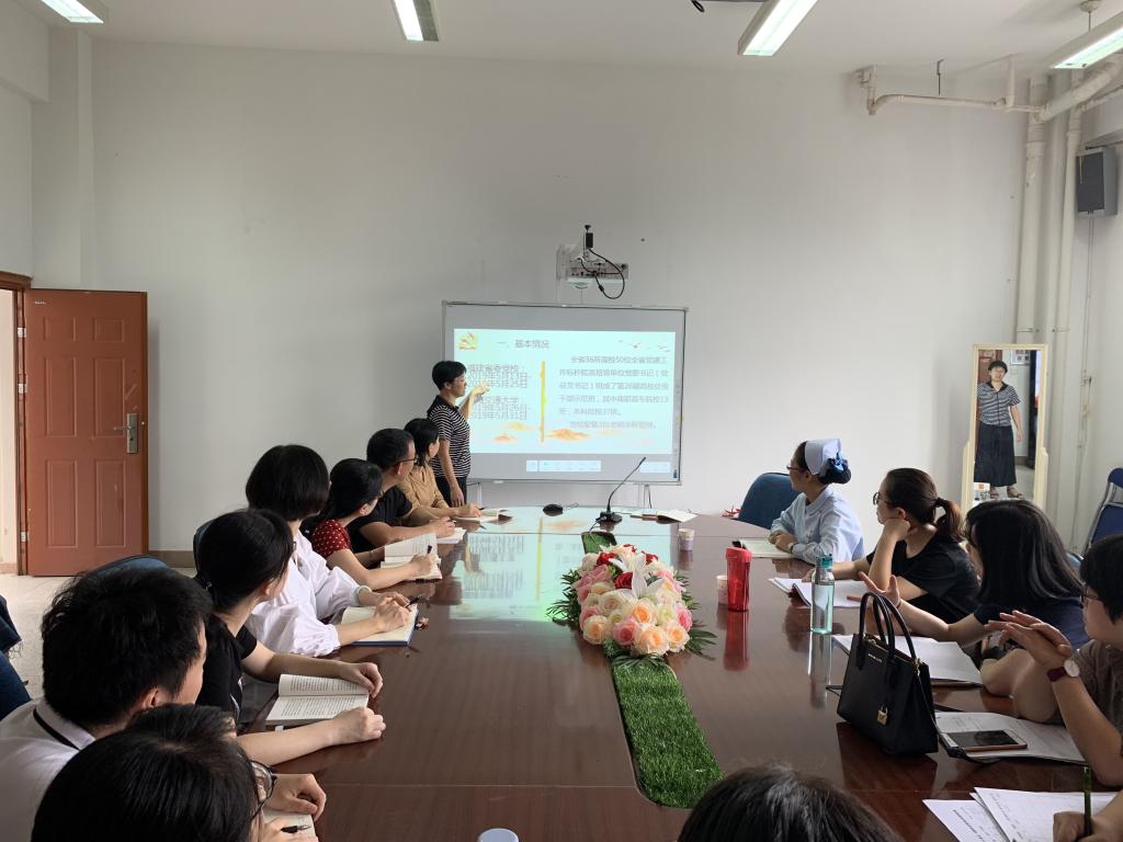 2019年5月13日至5月31日,全省36所高校50位全省黨建工作標(biāo)桿院系培育單位黨委書記(黨總支書記)在福建省委黨校和上海交通大學(xué)組成第26期高校處級干部示范班進(jìn)行學(xué)習(xí)。護(hù)理系黨總支謝濤書記參加了此次學(xué)習(xí),為將學(xué)習(xí)精神傳達(dá)給廣大黨員同志,謝濤同志于2019年6月27日在護(hù)理系301會議室向護(hù)理系黨員同志匯報了學(xué)習(xí)體會。