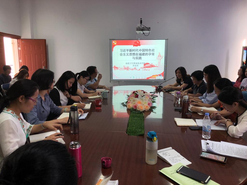 為推動“不忘初心、牢記使命”主題教育全面開展,深入學習習近平新時代中國特色社會主義思想,2019年10月10日,院黨委李美華副書記于護理系301會議室開展了題為“習近平新時代中國特色社會主義思想在福建的孕育與實踐”的專題黨課。護理系全體教師到場聆聽。