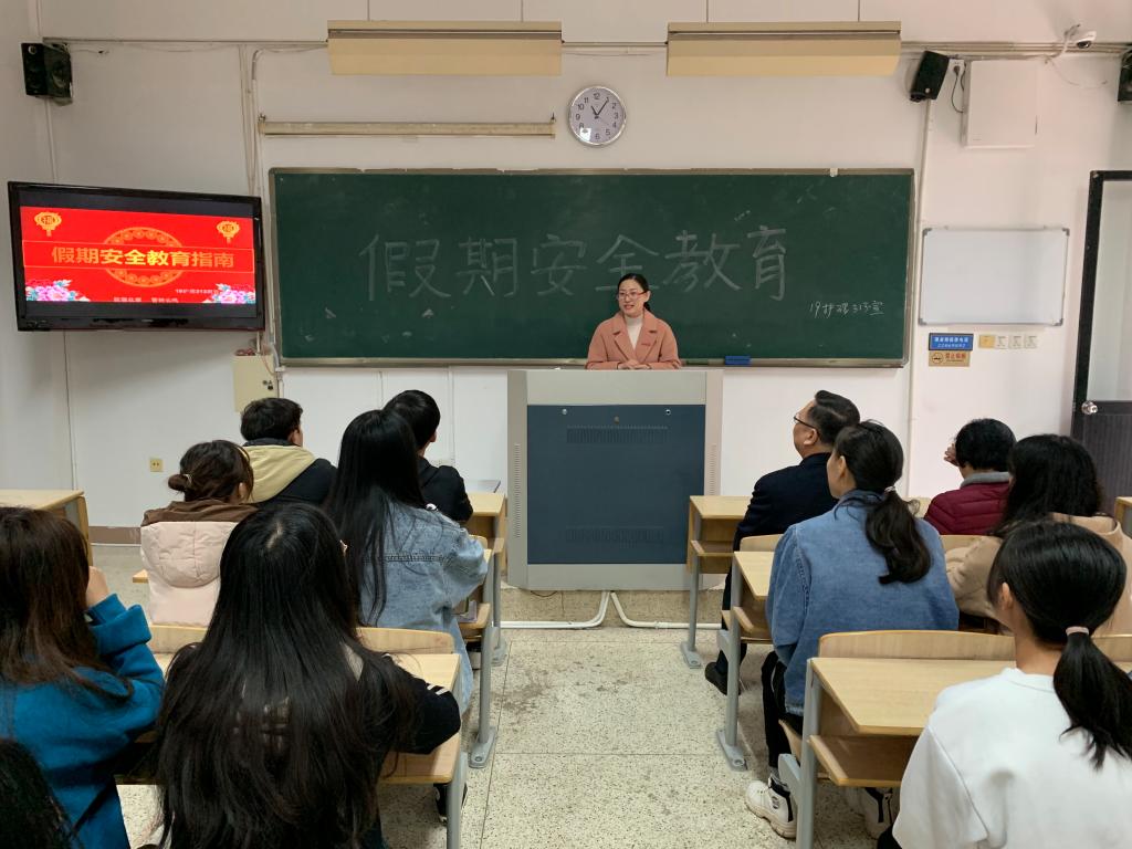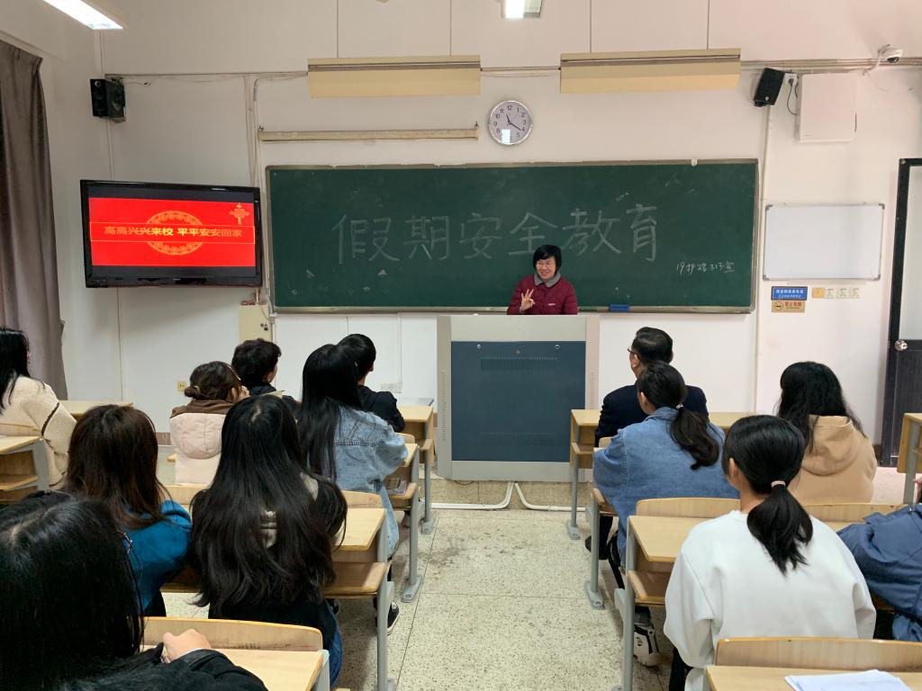 班會(huì)上,輔導(dǎo)員李英老師先就假期宿舍安全、交通安全、居家安全、飲食安全、娛樂(lè)安全、網(wǎng)絡(luò)安全六個(gè)方面進(jìn)行了深入淺出的講解。