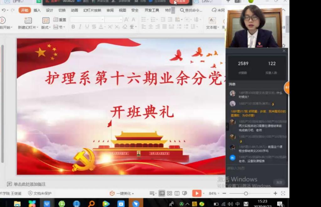 4月22日,護理系采用釘釘直播的方式舉行第16期分黨校開班儀式,組織員許慧瓊主持本次開班儀式,130名入黨積極分子參加本次開班儀式。受疫情影響,護理系第16期分黨校培訓(xùn)部分課程采用網(wǎng)絡(luò)教學(xué)形式開展。