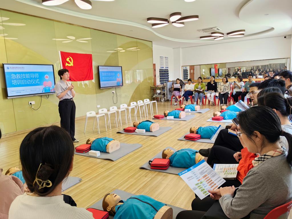 該培訓項目包括在線學習、現(xiàn)場教學、自主學習、實戰(zhàn)考核四個階段,旨在對全校各學院精選的31名“種子”教師開展成人心肺復蘇術(CPR)和自動體外除顫儀(AED)技能培訓,目的是培養(yǎng)一批具備CPR和AED知識和技能、能夠勝任急救技能培訓工作的急救技能導師團隊。