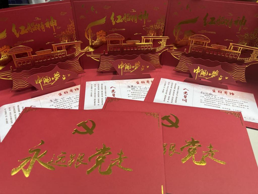 “政治生日”不僅是入黨的紀(jì)念日,更是每一位共產(chǎn)黨員的信仰名片。黨支部為畢業(yè)生黨員開展了一場集體“政治生日”,向畢業(yè)生黨員送上政治生日賀卡,每張賀卡上都寫著黨員的姓名、入黨時(shí)間、入黨誓詞,意在提醒黨員們時(shí)刻牢記黨員身份,不忘黨的宗旨,銘記黨的使命,在崗位中不畏困難,發(fā)揮黨員先鋒模范帶頭作用。
