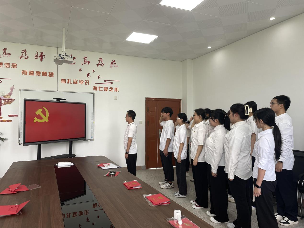 入黨誓詞,是黨員對黨和人民作出的莊嚴(yán)承諾。習(xí)近平總書記指出,入黨誓詞字?jǐn)?shù)不多,記住并不難,難的是終身堅(jiān)守。每個(gè)黨員要牢記入黨誓詞,經(jīng)常加以對照,堅(jiān)定不移,終生不渝?!拔抑驹讣尤胫袊伯a(chǎn)黨,擁護(hù)黨的綱領(lǐng),遵守黨的章程,履行黨員義務(wù),執(zhí)行黨的決定,嚴(yán)守黨的紀(jì)律……”全體黨員在領(lǐng)誓人的帶領(lǐng)下舉起右臂共同宣誓,重溫入黨誓詞,再一次接受了入黨誓詞的洗禮,堅(jiān)定了共產(chǎn)黨人的初心和使命。