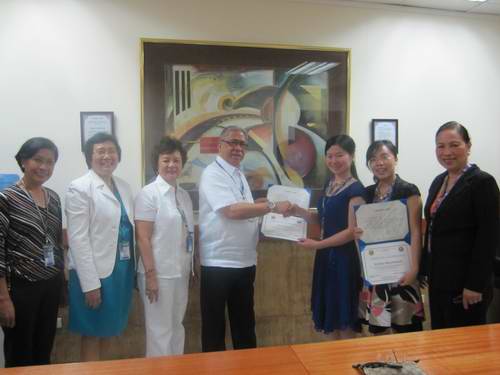 在學(xué)院加強(qiáng)中菲護(hù)理教育交流、推進(jìn)我系護(hù)理教育國際化的背景下,王珊珊和吳美丹兩位老師赴菲律賓UERMMMCI (The University of The East Ramon Magsaysay Memorial Medical Center, INC) College Of Nursing為期兩個(gè)月的學(xué)習(xí)訪問。于2011年4月29日圓滿完成各項(xiàng)任務(wù)勝利返校。