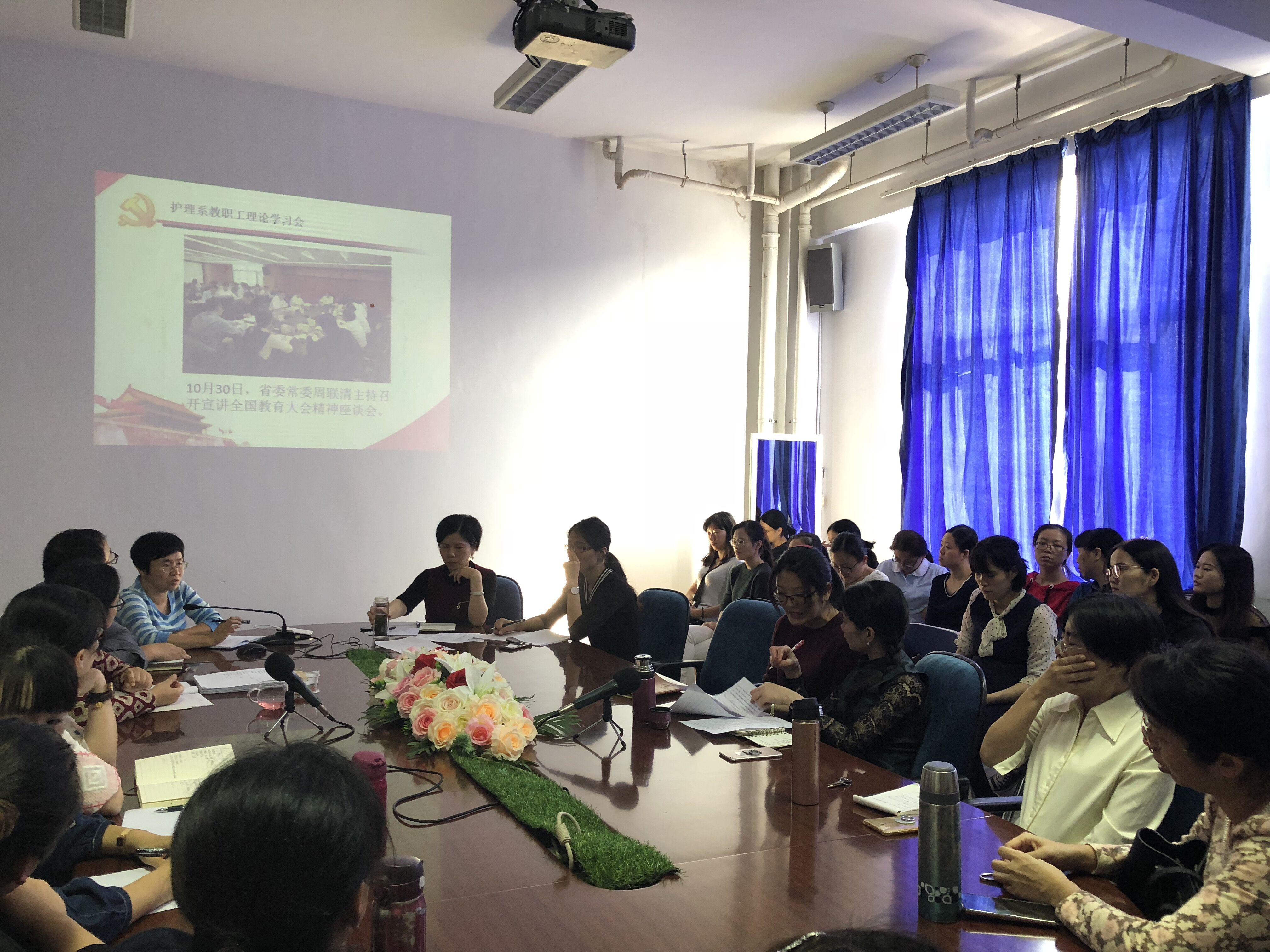 首先,謝濤書記傳達(dá)學(xué)習(xí)了全省宣傳思想工作會(huì)議精神、省委常委周聯(lián)清10月30日在宣講全國(guó)教育大會(huì)精神座談會(huì)上的講話精神以及蘇友新院長(zhǎng)在11月7日的黨委理論學(xué)習(xí)中心組(擴(kuò)大)會(huì)議上的部署要求。其次大家對(duì)學(xué)習(xí)《中華人民共和國(guó)教師法》、 《中華人民共和國(guó)教育法》和《中華人民共和國(guó)高等教育法》等情況展開了熱烈談?wù)?,大家紛紛表示要加?qiáng)習(xí)近平新時(shí)代中國(guó)特色社會(huì)主義思想、黨的十九大精神和教育相關(guān)的法律法規(guī)的學(xué)習(xí),不斷增強(qiáng)法治意識(shí)和提高政治素養(yǎng)和業(yè)務(wù)能力,為培養(yǎng)德智體美勞全面發(fā)展的社會(huì)主義建設(shè)者和接班人而奮斗。