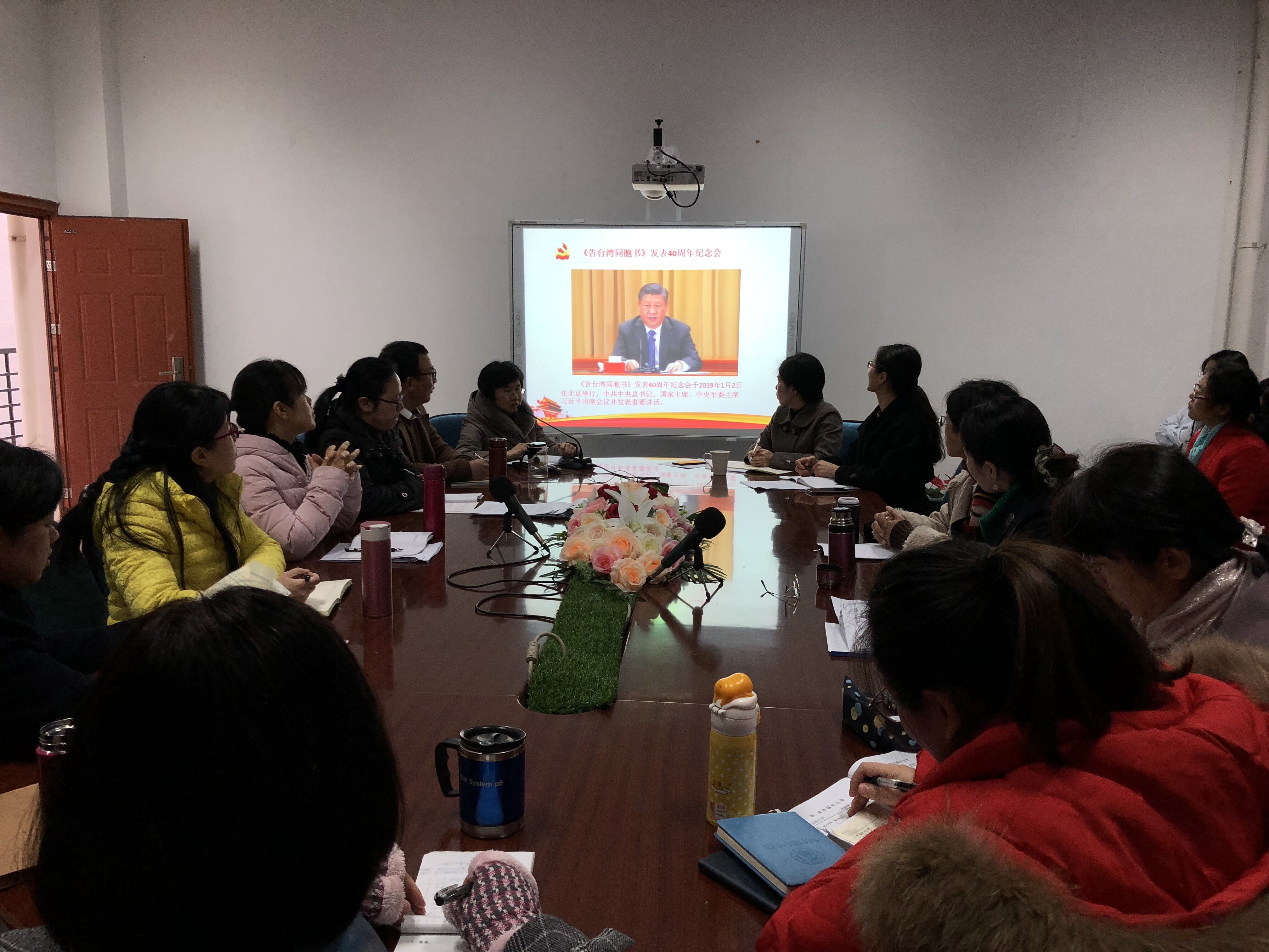 12日,《告臺灣同胞書》發(fā)表40周年紀念會在北京人民大會堂舉行,習近平總書記出席紀念會并發(fā)表重要講話。為充分學習領會習近平總書記的重要講話精神,201913日,護理系黨總支于護理系301會議室組織學習了習近平總書記在《告臺灣同胞書》發(fā)表40周年紀念會上的重要講話精神。此次會議由護理系黨總支謝濤書記主持,護理系全體教職工參加了此次學習。