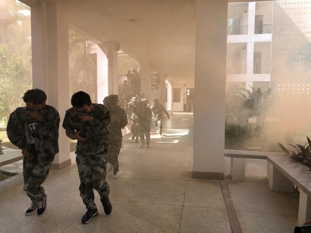 為保證演練順利開展,系部預(yù)先制定演練方案,明確演練步驟及人員,保衛(wèi)處林捷老師對(duì)參加演練的人員進(jìn)行了安全知識(shí)培訓(xùn),并進(jìn)行現(xiàn)場(chǎng)演示。下午200,教學(xué)樓黃煙四起、警報(bào)鈴響,各位老師迅速到達(dá)指定崗位,現(xiàn)場(chǎng)指揮發(fā)出第一次避險(xiǎn)指令,學(xué)生根據(jù)演練要求,在課桌及墻角蹲下,等待現(xiàn)場(chǎng)指揮發(fā)出逃生指令;在現(xiàn)場(chǎng)指揮發(fā)出逃生指令后,學(xué)生們紛紛用手、濕紙巾等捂住口鼻,彎著腰從預(yù)定的逃生路線進(jìn)行撤離,撤退過程井然有序,僅用3分鐘,參加本次演練的1000多名學(xué)生全部安全撤離到指定區(qū)域。