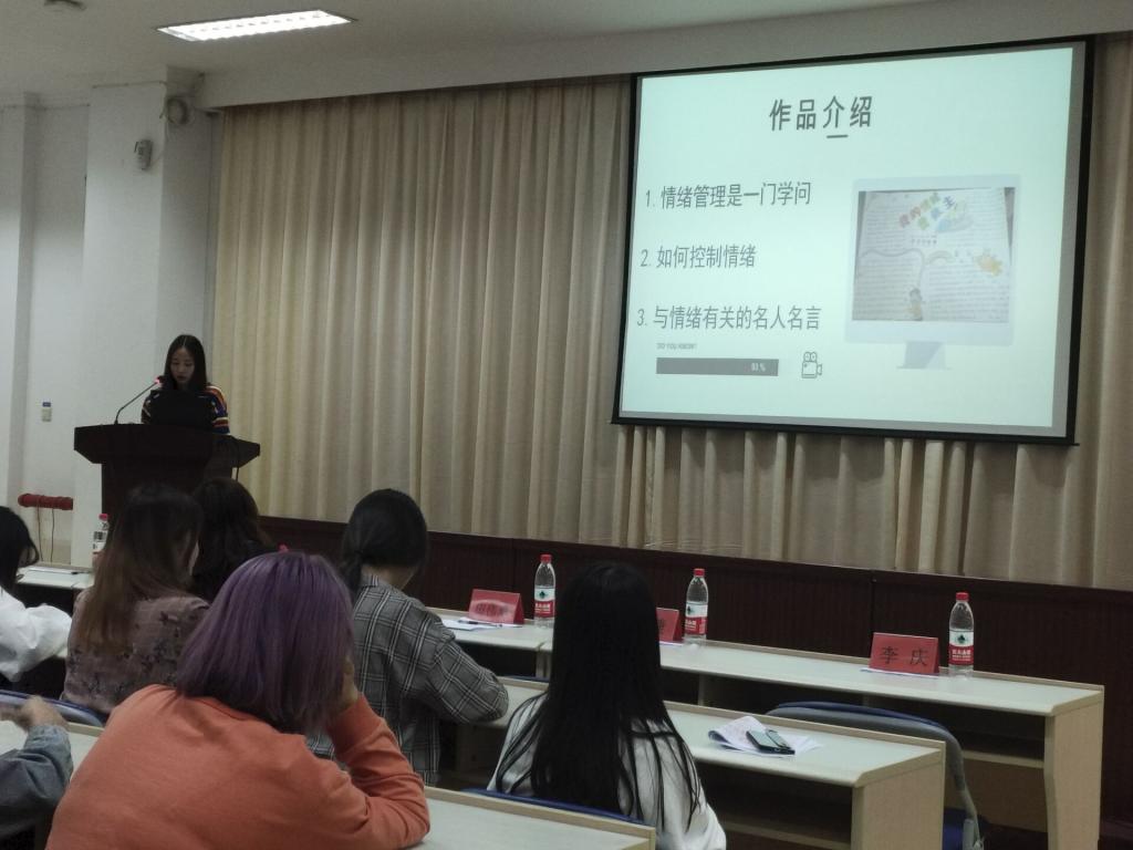 決賽于2019年10月20日在行政樓六樓會議室進(jìn)行。參與此次活動的有院心理健康教育中心副主任田偉翠老師、護(hù)理系心理輔導(dǎo)站鄭梅欽老師、護(hù)理系團(tuán)總支副書記張龍、林飛準(zhǔn)老師、護(hù)理系輔導(dǎo)員李曉佳等老師,以及全體心理委員和部分同學(xué)?;顒又羞x手們主要借用PPT分享自己優(yōu)秀的手抄報(bào)作品、創(chuàng)作思路與內(nèi)心感悟。在體驗(yàn)兩個小時的“情緒調(diào)控術(shù)”盛宴后,評委老師們根據(jù)選手們的綜合表現(xiàn)得出:謝琳潔獲得一等獎,徐琳馨等3人獲得二等獎,付詩藝、陳虹等4人獲得三等獎,呂金蓮、江舒敏,郭凌湘等人獲得優(yōu)秀獎。