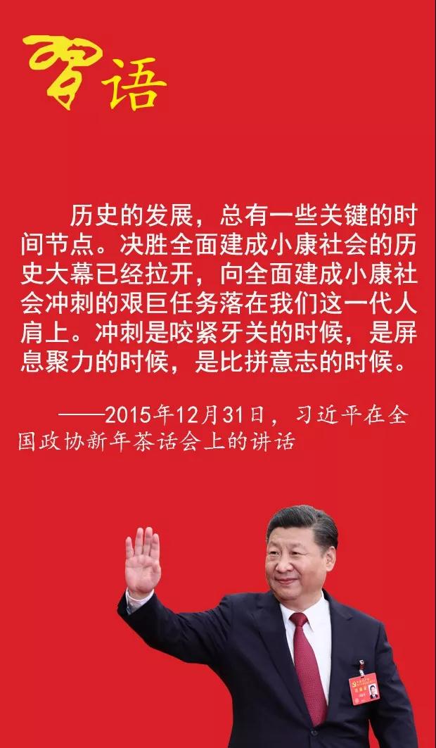 2020年,是全面建成小康社會之年,是實現(xiàn)第一個百年奮斗目標(biāo)之年,堅決打贏脫貧攻堅戰(zhàn),確保到2020年所有貧困地區(qū)和貧困人口一道全面邁入小康社會,這是以習(xí)近平同志為核心的黨中央對全國人民的莊嚴(yán)承諾。