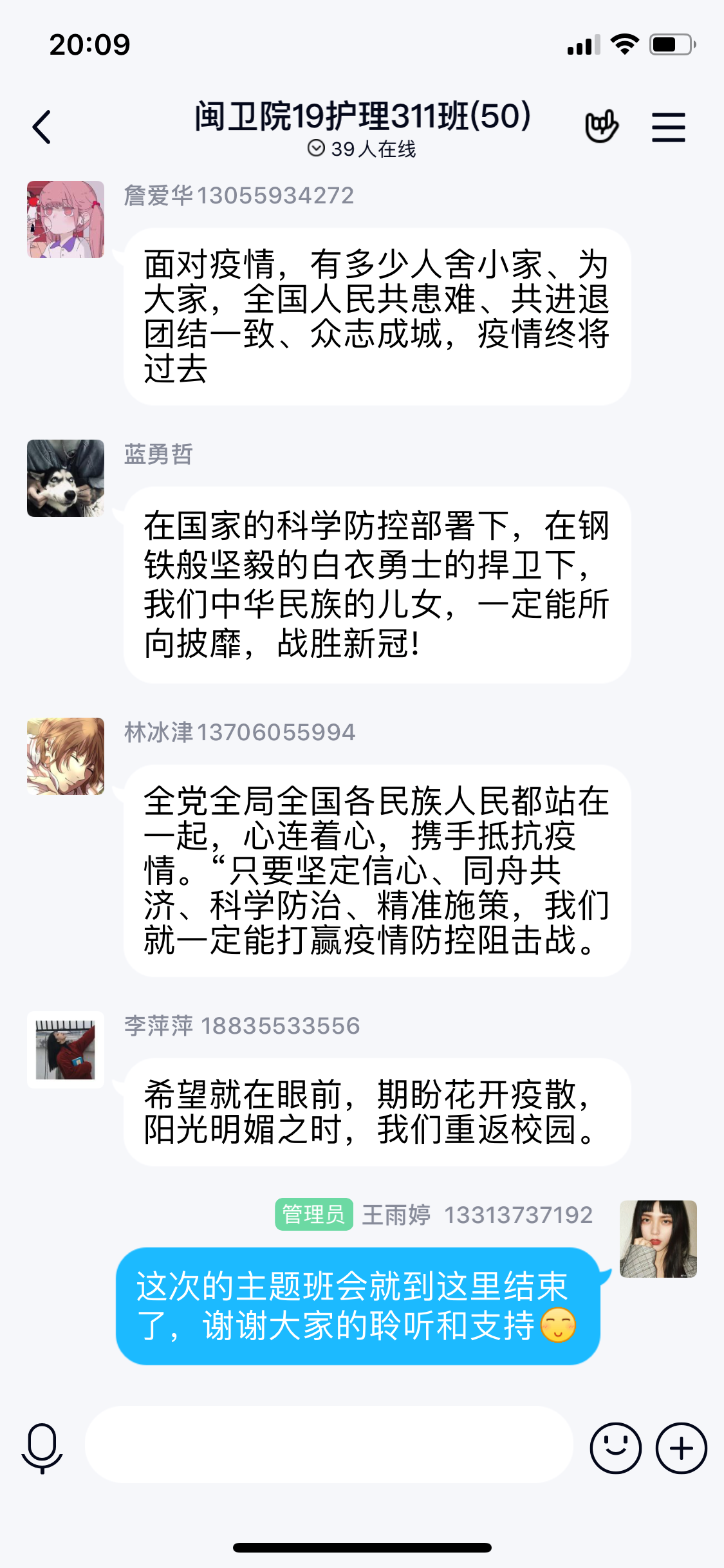 通過此次線上主題班會(huì),同學(xué)們意識(shí)到心理健康的重要性,在相互交流的同時(shí),也有效的引導(dǎo)同學(xué)們正確認(rèn)識(shí)和對(duì)待疫情,增強(qiáng)同學(xué)們自我防控意識(shí)和共渡難關(guān)的信心,提高班級(jí)凝聚力,為即將到來的開學(xué)做好萬全準(zhǔn)備。