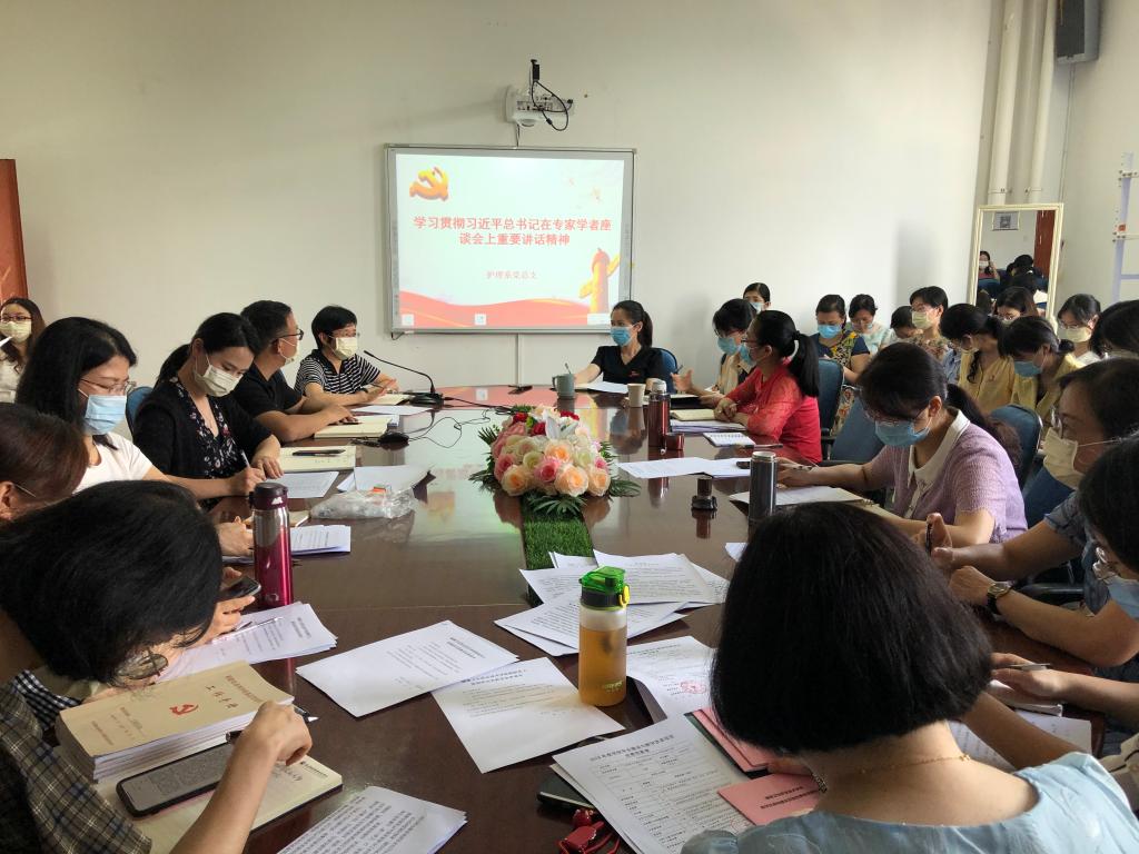 6月4日,護(hù)理系召開全系教職工會(huì)議,組織學(xué)習(xí)了習(xí)近平總書記在專家學(xué)者座談會(huì)上的重要講話精神,會(huì)議由護(hù)理系謝濤書記主持。