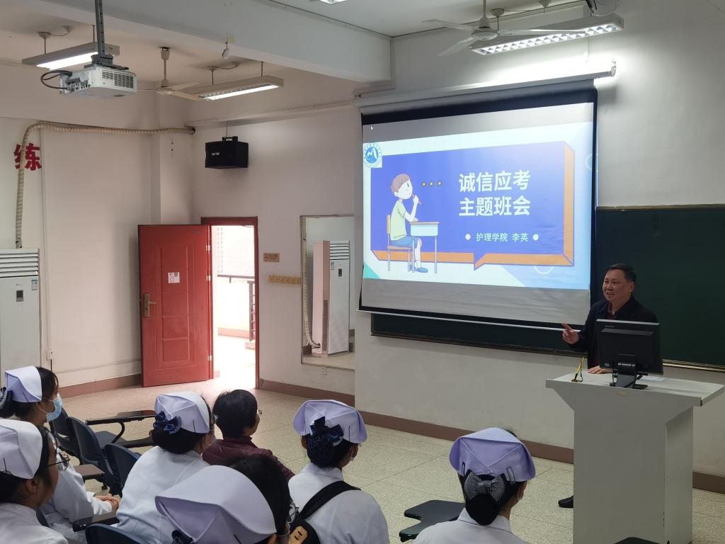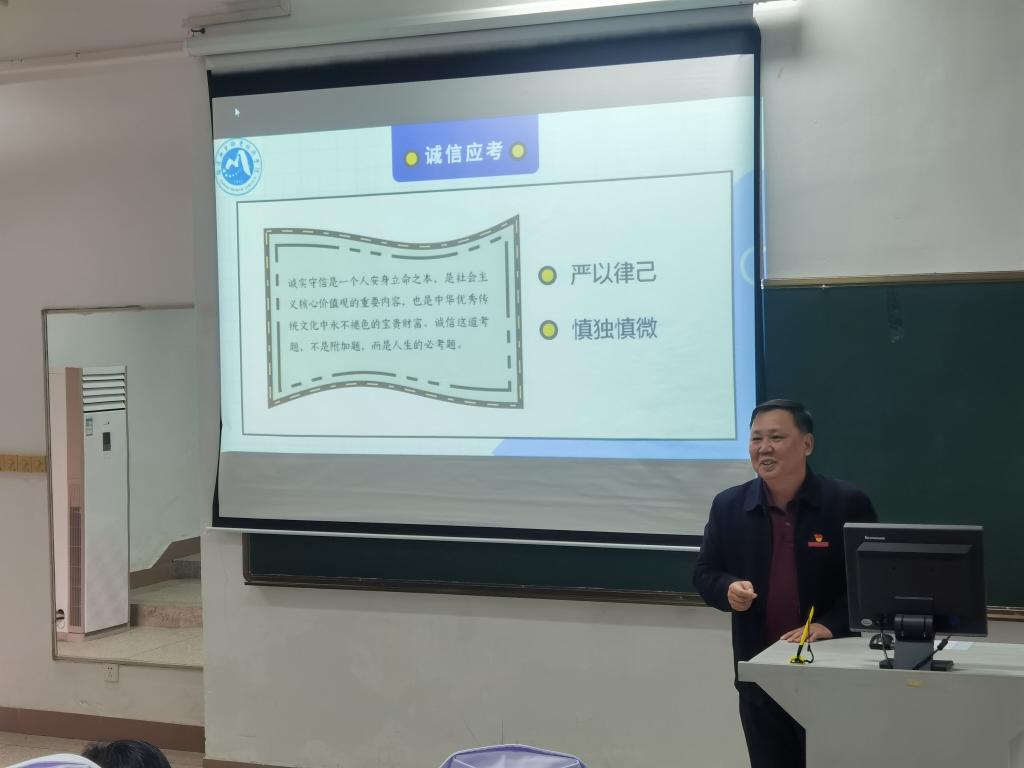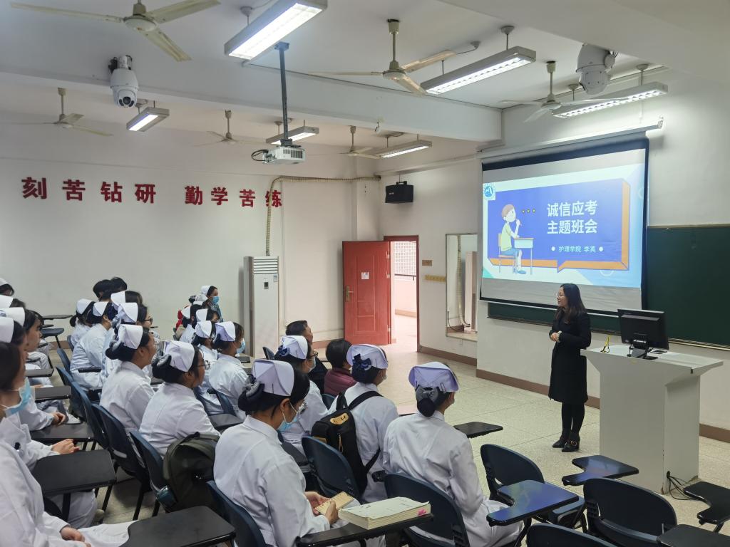 會上,李英從立德修身、誠信應考,認真復習、用心備考,調整心態(tài)、善對成績三個方面對同學們進行誠信應考的動員。