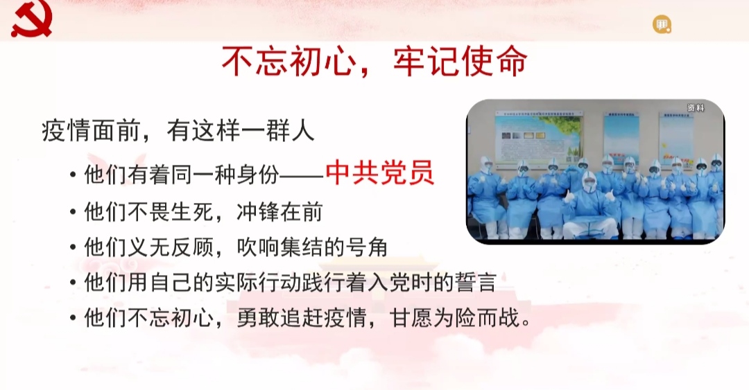 白衣執(zhí)甲,逆向而行,在2020年爆發(fā)的新冠肺炎疫情中,黨員同志們不畏生死,沖鋒在前,堅持人民至上,義無反顧,甘愿為人民而奮戰(zhàn)!我校畢業(yè)校友積極響應(yīng)黨中央的號召,不顧艱險,馳援武漢,他們幾乎都有著一樣的身份,那就是“中共黨員”!他們用自己的實際行動踐行著入黨時的誓言,不忘初心、牢記使命。