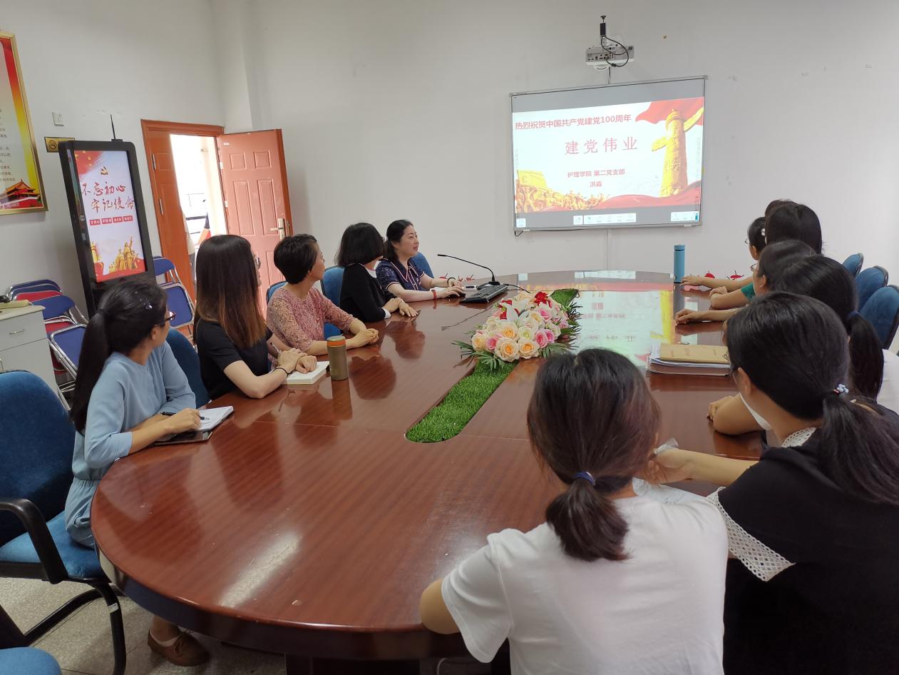 今年是中國共產(chǎn)黨成立100周年,百年征程波瀾壯闊,百年初心歷久彌堅。從播下革命火種的小小紅船,到領(lǐng)航復興偉業(yè)的巍巍巨輪,在百年奮斗歷程中,我們黨領(lǐng)導人民取得了舉世矚目的輝煌成就,書寫了波瀾壯闊的歷史畫卷,留下了彌足珍貴的寶貴經(jīng)驗和精神財富。為祝賀中國共產(chǎn)黨成立100周年,護理學院第二黨支部書記洪霞為支部黨員開展題為“重溫成立偉業(yè)”的專題黨課。
