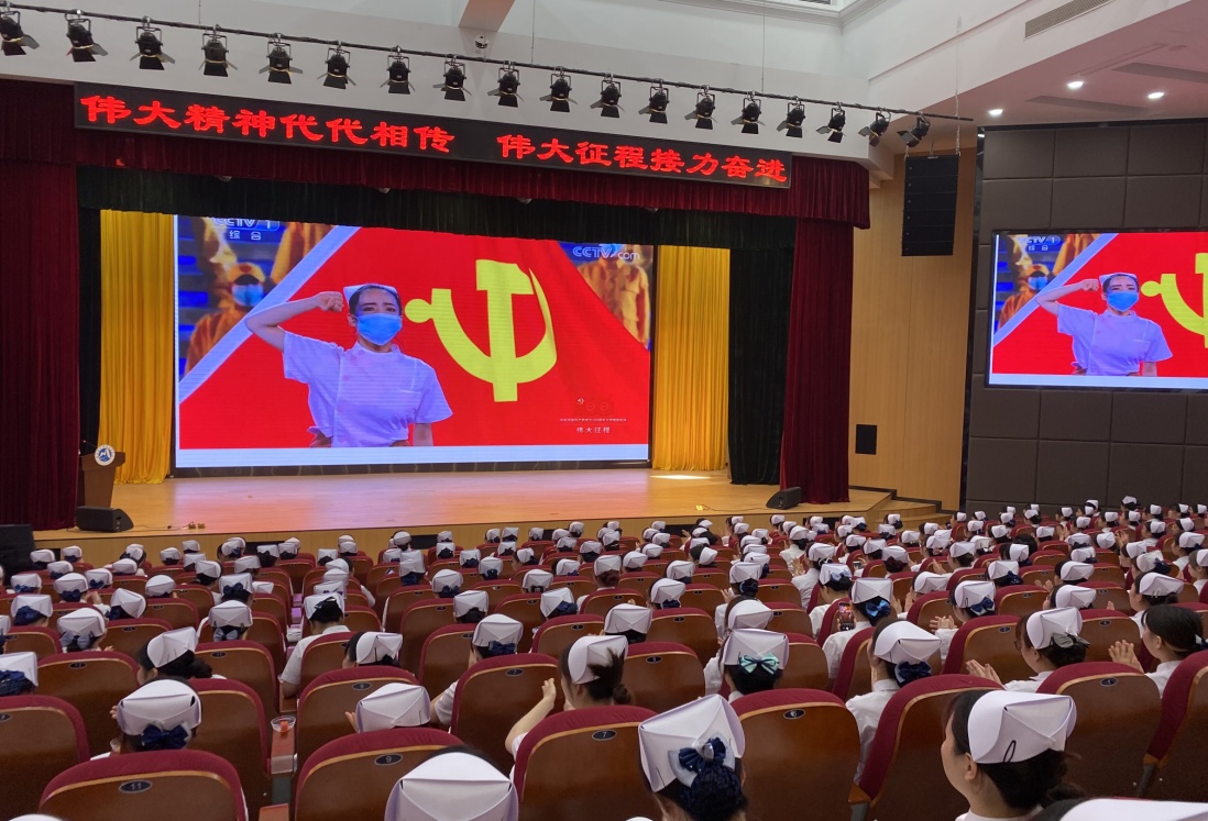 接著,全體畢業(yè)生一同欣賞慶祝中國(guó)共產(chǎn)黨成立100周年文藝演出《偉大征程》情景交響歌舞《人民至上》精彩剪輯。一身白衣,一頂燕尾帽,一句誓詞,今天的傳光授帽,傳承的不僅僅是敬佑生命、救死扶傷、甘于奉獻(xiàn)、大愛(ài)無(wú)疆的南丁格爾精神,更重要的是傳承我們中國(guó)護(hù)理人在中國(guó)共產(chǎn)黨的領(lǐng)導(dǎo)下,投身偉大戰(zhàn)疫實(shí)踐中所形成的人民至上、生命至上、舍生忘死、不負(fù)重托的精神理念。