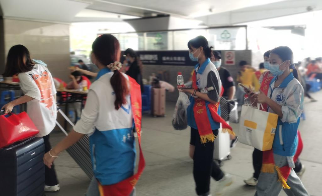 迎新當(dāng)天,護(hù)理學(xué)院老師們和學(xué)生志愿者早早地在火車站開展接站服務(wù),學(xué)院還安排了校內(nèi)接駁車,幫助入校的新生搬運(yùn)行李,讓不能陪同的父母安心。