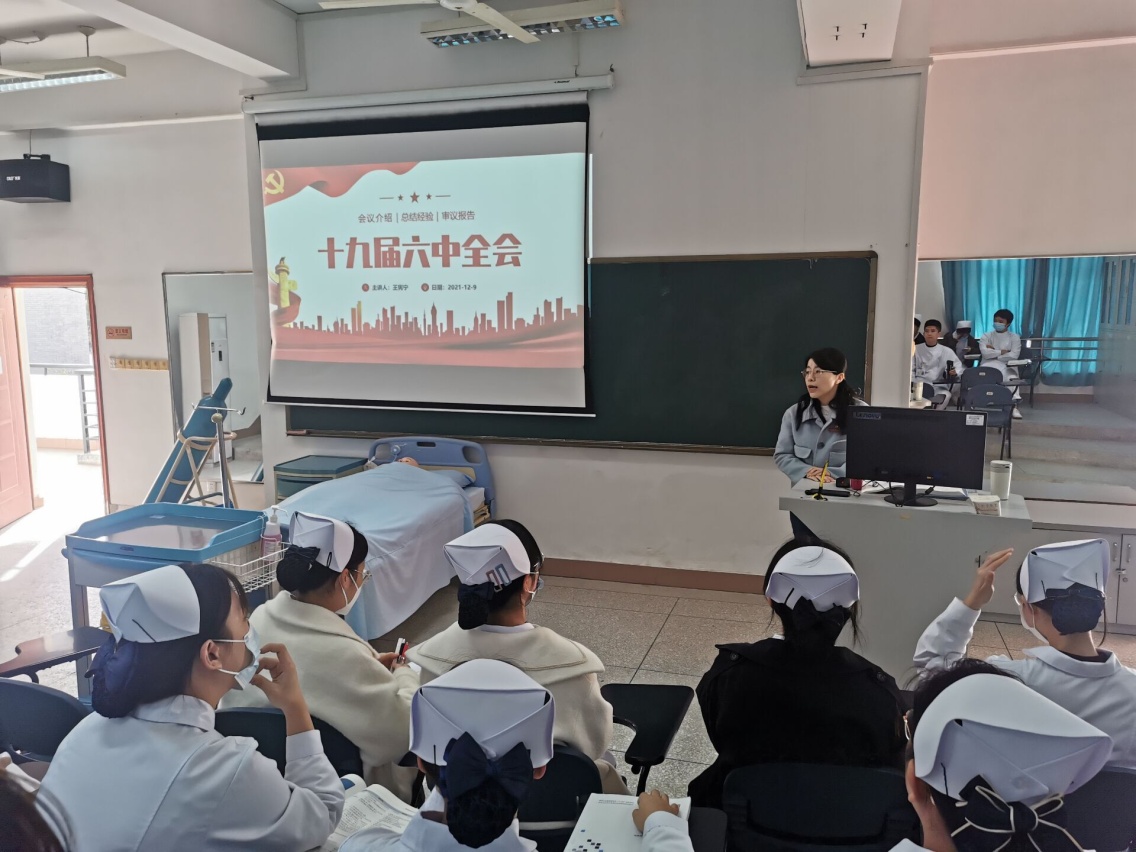 護(hù)理學(xué)院副院長王憲寧為聯(lián)系班級講授黨的十九屆六中全會精神專題思政課